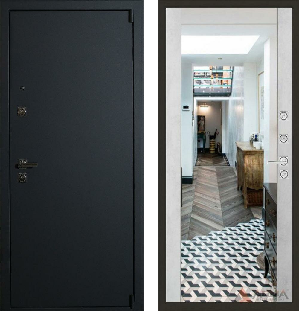 Входная дверь Арма Сити Блэк 11 с зеркалом "Бетон светлый" 860x2050, открывание левое информация: