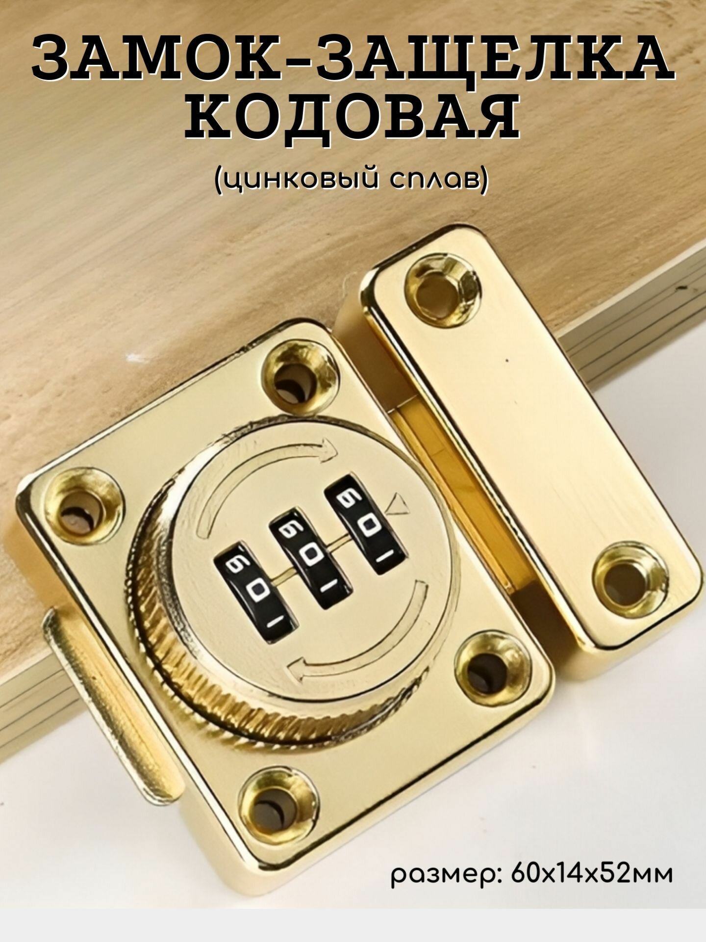 Замок кодовый для шкафа или ящика, накладной, золотистый, 60 мм информация: