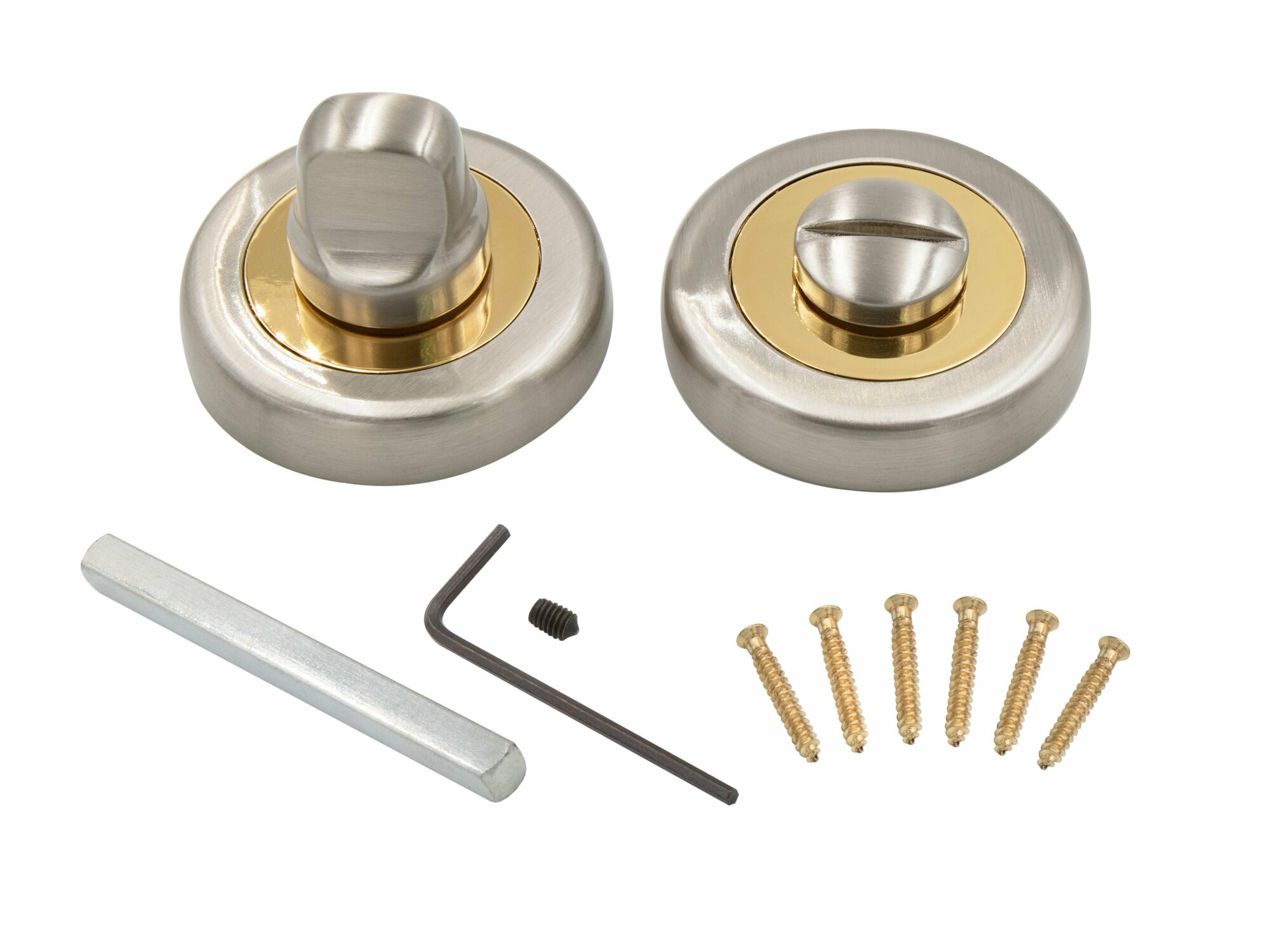 Поворотник фиксатор для двери межкомнатной, Поворотник фиксатор сантехнический круглая O SN/GP Матовый хром/золото 304 ₽