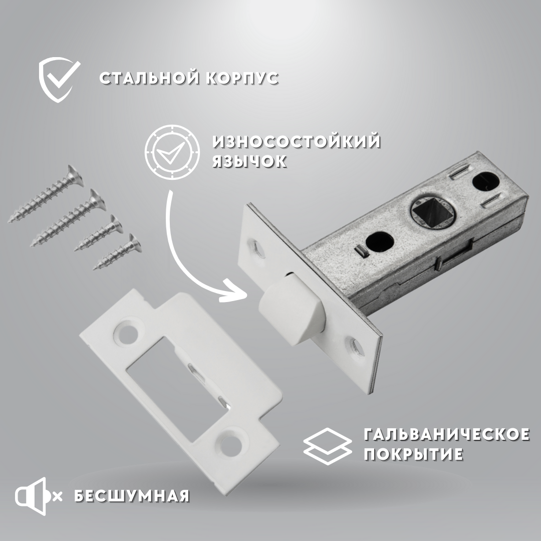 Защелка для межкомнатных дверей, цвет белый, сталь, врезная информация: