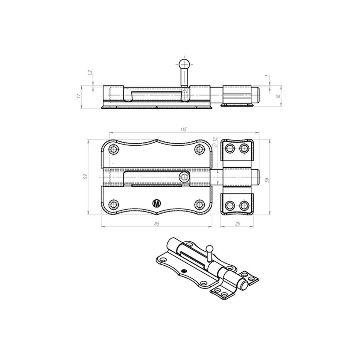 Задвижка металлическая Металлист ЗТ-2-85, накладная, серебристая, цинк информация: