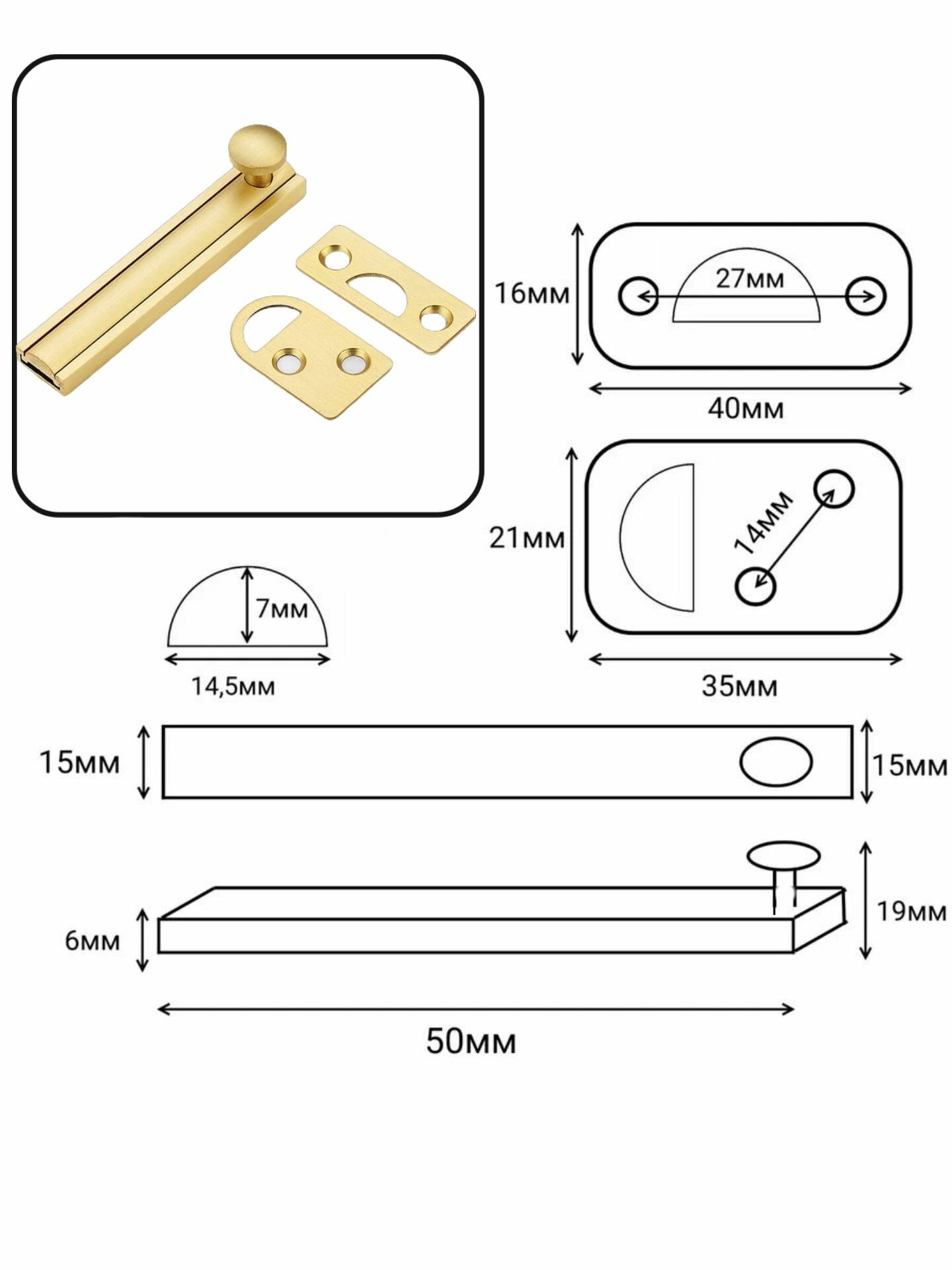 Отзывы на Шпингалет накладной, задвижка для двери комбинированная, цвет золотой 50мм