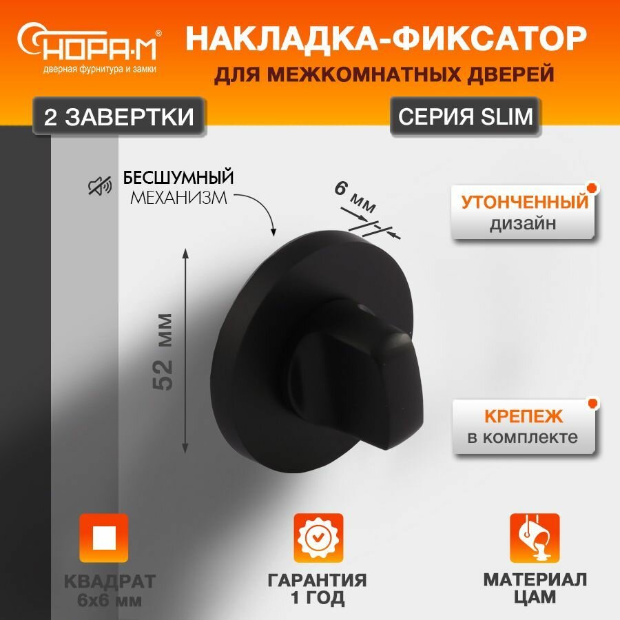 Завертка дверная межкомнатная до 42мм НОРА-М НФ-А Slim - Черный информация: