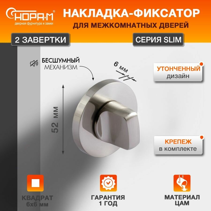 Завертка дверная фиксатор, НОРА-М НФ-А Slim - Матовый никель информация: