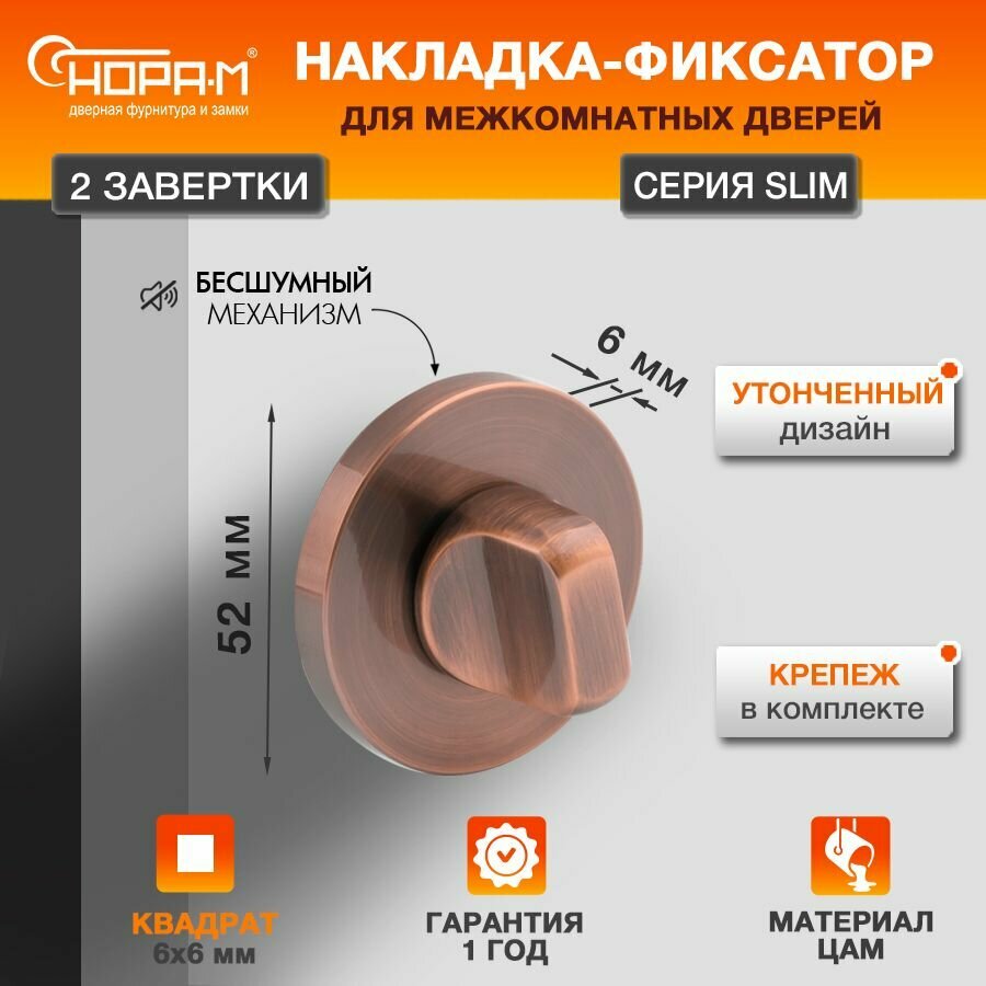 Завертка дверная межкомнатная НОРА-М НФ-А Slim - Старая медь информация: