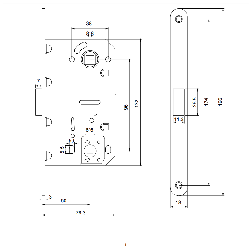 Защелка врезная, Code Deco, 5300-MC-WC-BLM, 31294, язычок пластиковый, с фиксатором, черная