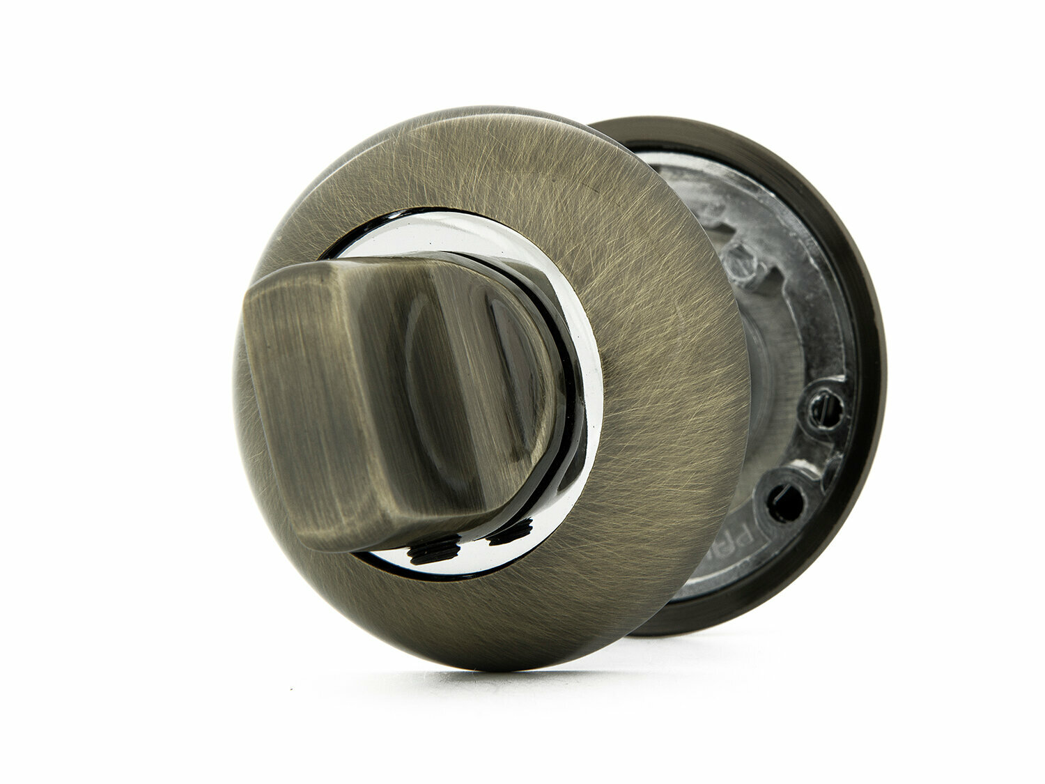 Ручка-защелка дверная межкомнатная (кноб) с фиксатором без ключей стандарт 607 BK AB бронза