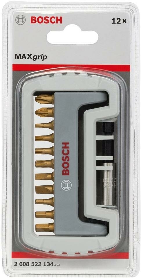 Набор Bosch из 11 бит Max Grip PH/PZ/T/S/HEX TiN + быстросменный держатель, арт. 2608522134 информация: