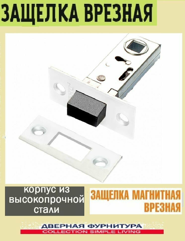 Защелка дверная/механизм на межкомнатную дверь с магнитным язычком MAGNET-White (белый) информация: