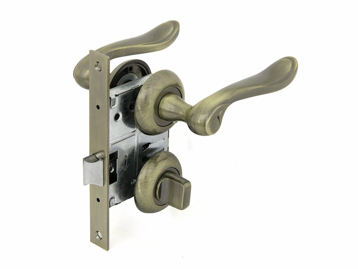 Ручка-защелка дверная межкомнатная (кноб) с фиксатором без ключей стандарт 607 BK AB бронза