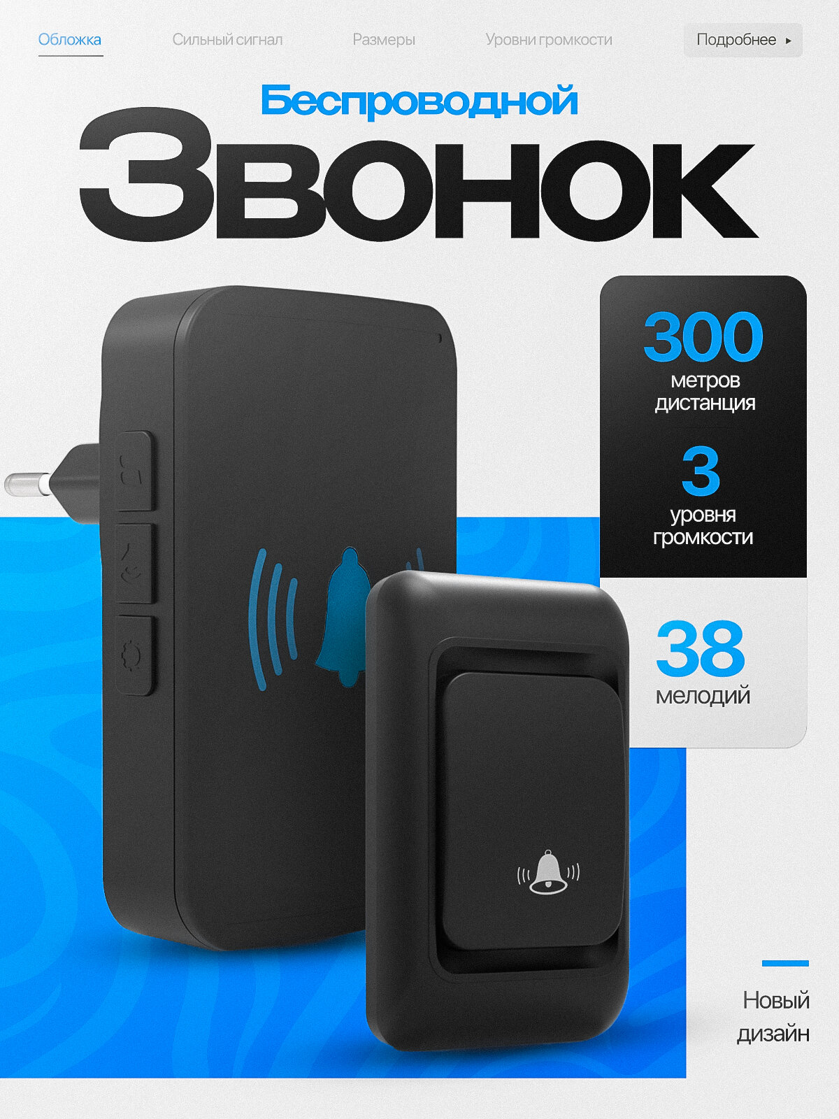 Отзывы на Беспроводной звонок, громкий, 38 мелодий, кнопка вызова влагозащищенная IP44