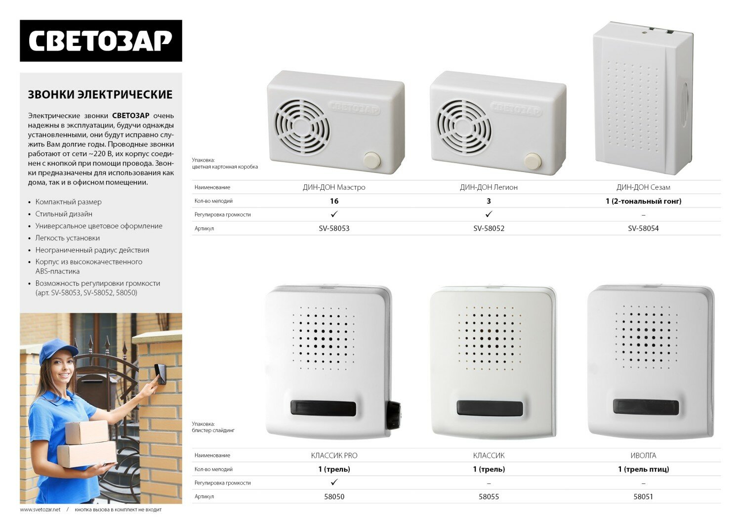 Проводной электрический звонок СВЕТОЗАР Сезам SV-58054 информация: