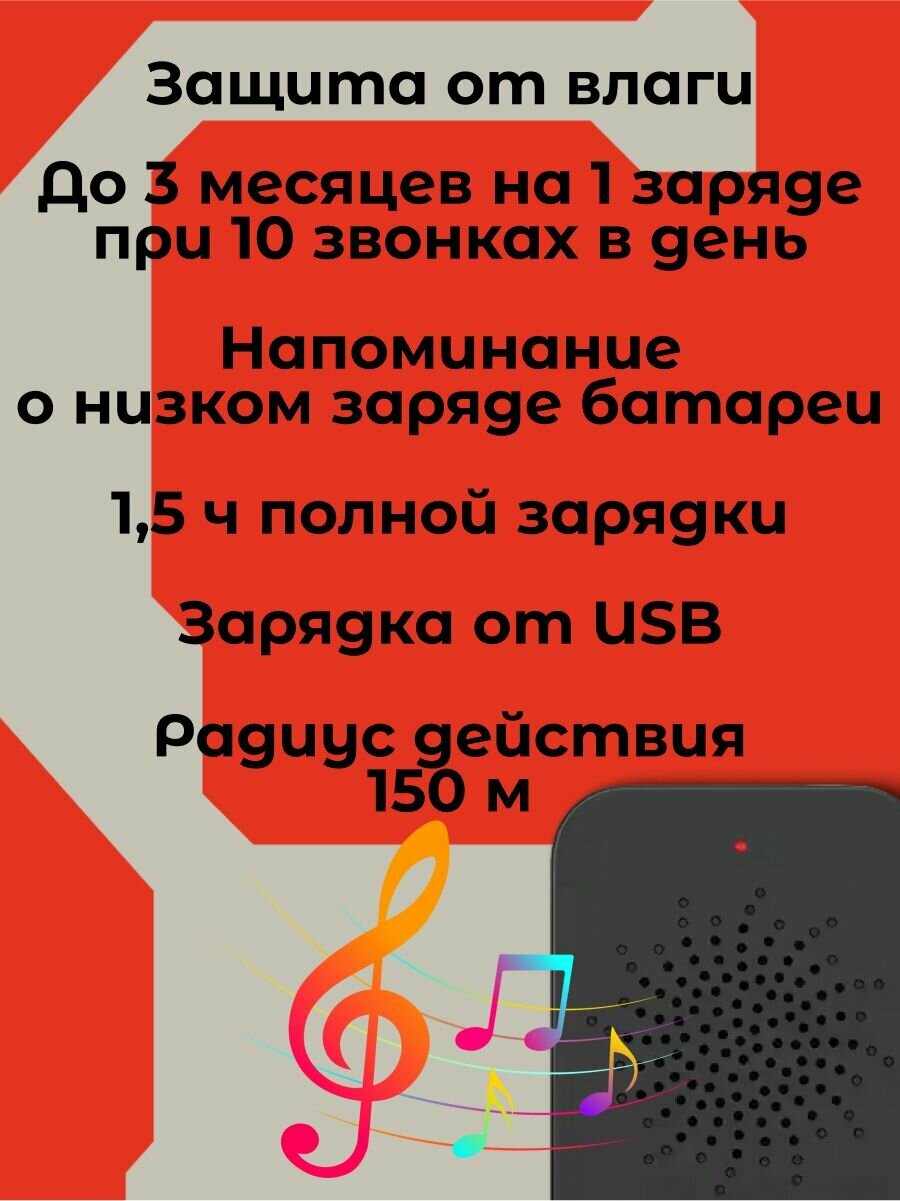 Беспроводной звонок Орбита 200 метров, 52 мелодии, 220B, 100дБ