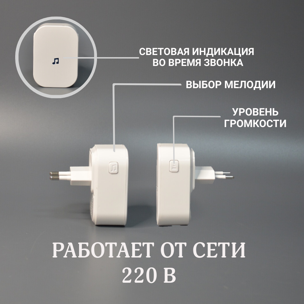 Беспроводной радиозвонок "KubVision" с подсветкой и световой индикацией сигнала, для домофона, белый информация: