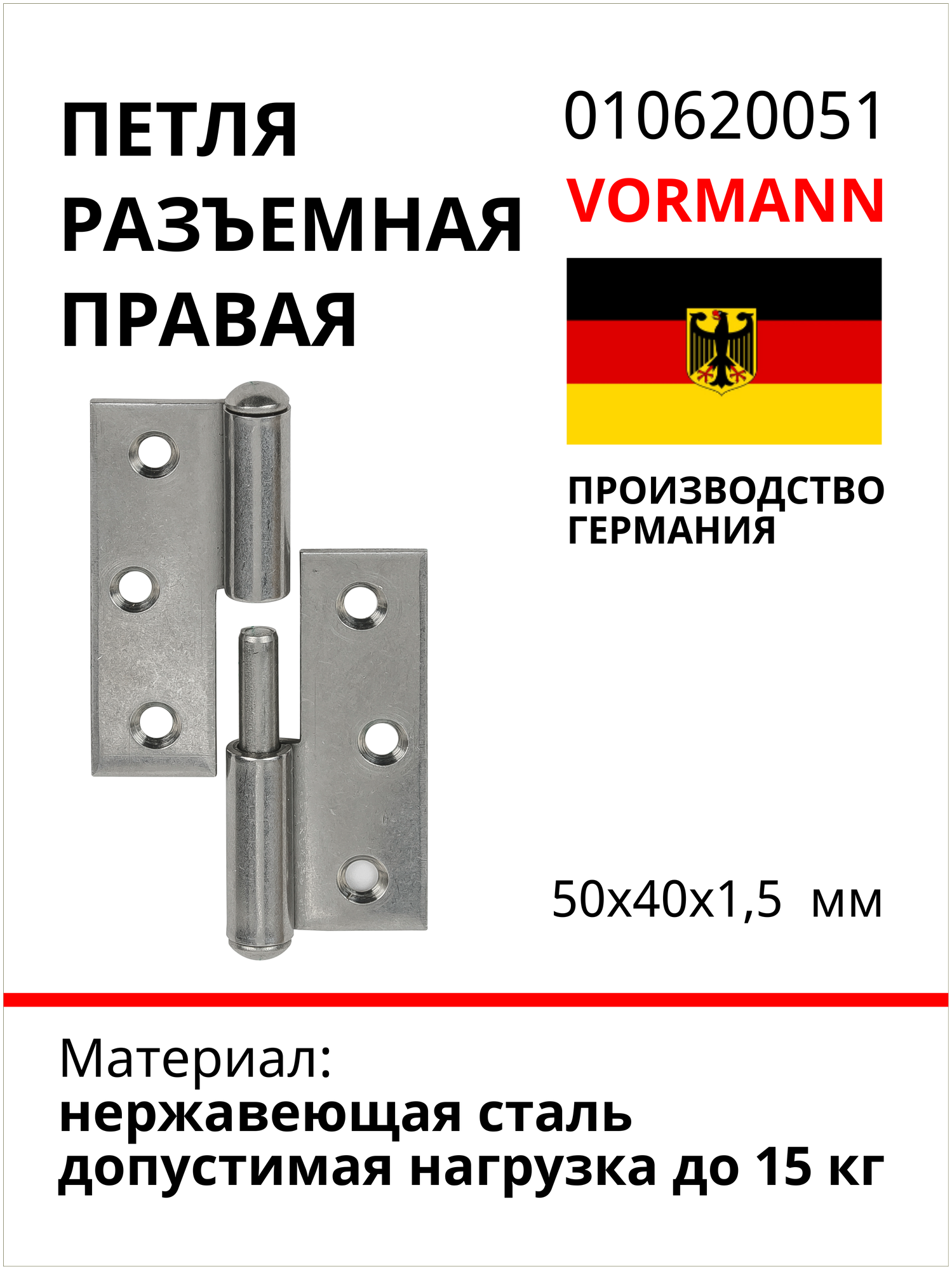 Петля VORMANN разъемная 50х40х1,5 мм, правая, нержавеющая сталь 010620051 информация: