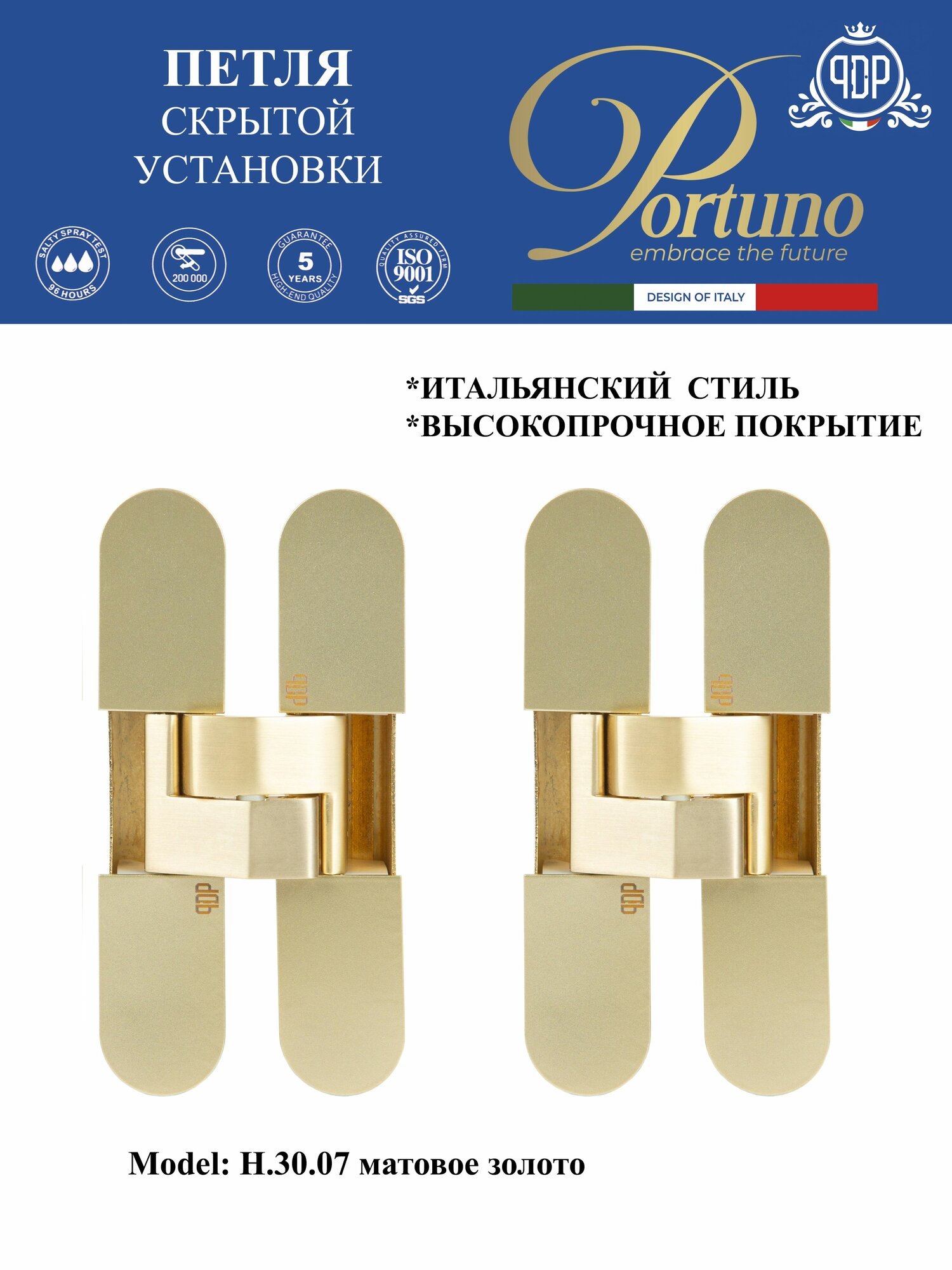 Петля скрытой установки PORTUNO PDP H30.07 дверная 114.5 мм. матовое золото информация:
