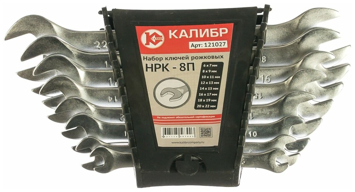 Набор ключей рожковых Калибр НРК-8П (8 штук, CrV) информация:
