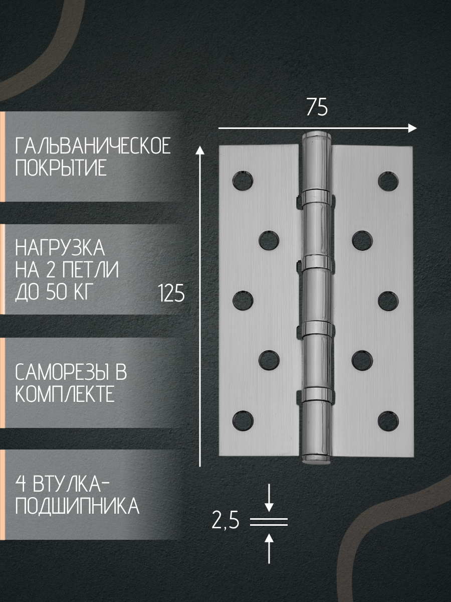 Петли для дверей, врезные, универсальная установка, цвет никель 2 шт информация: