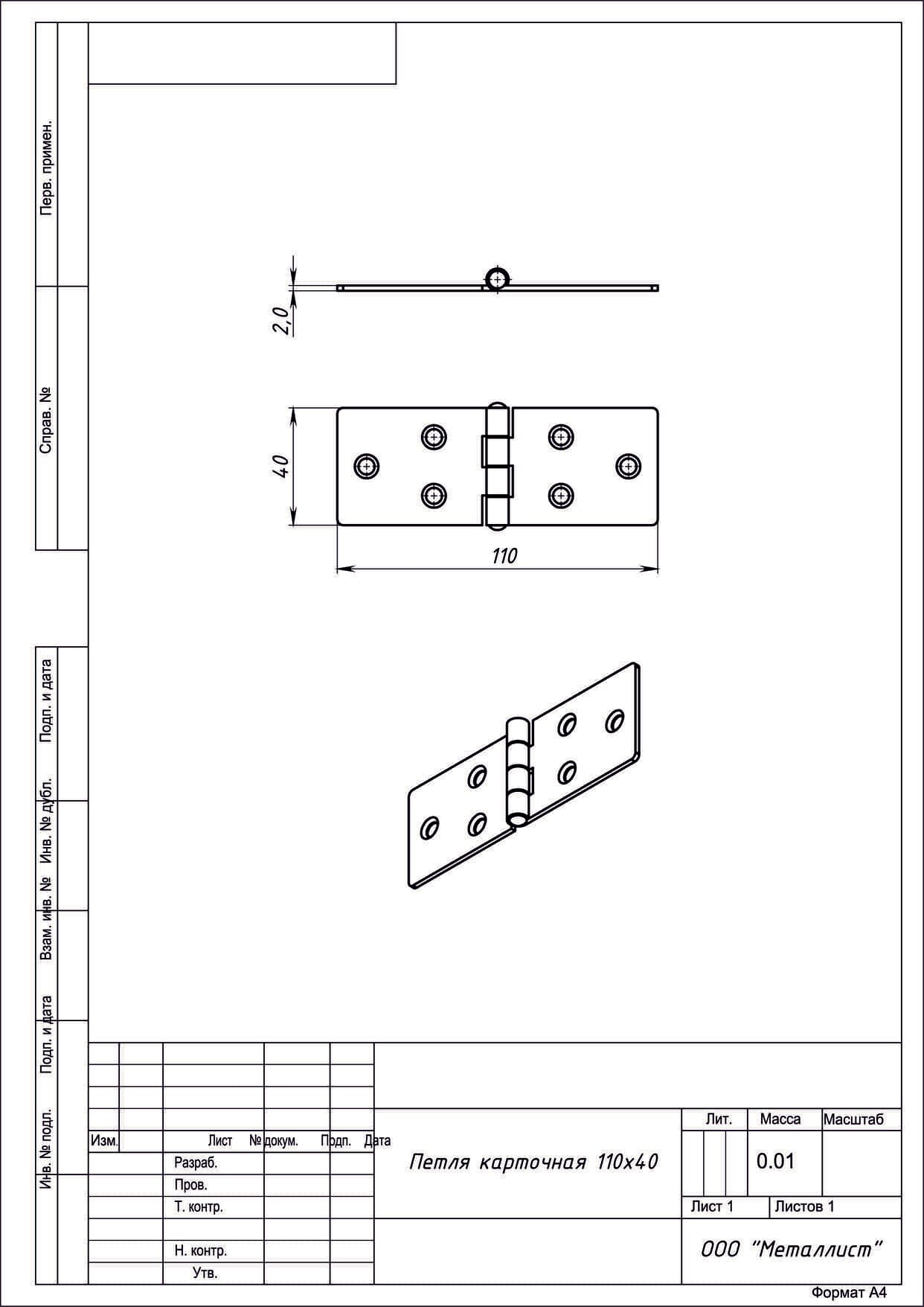Петля карточная 110х40 цинк информация: