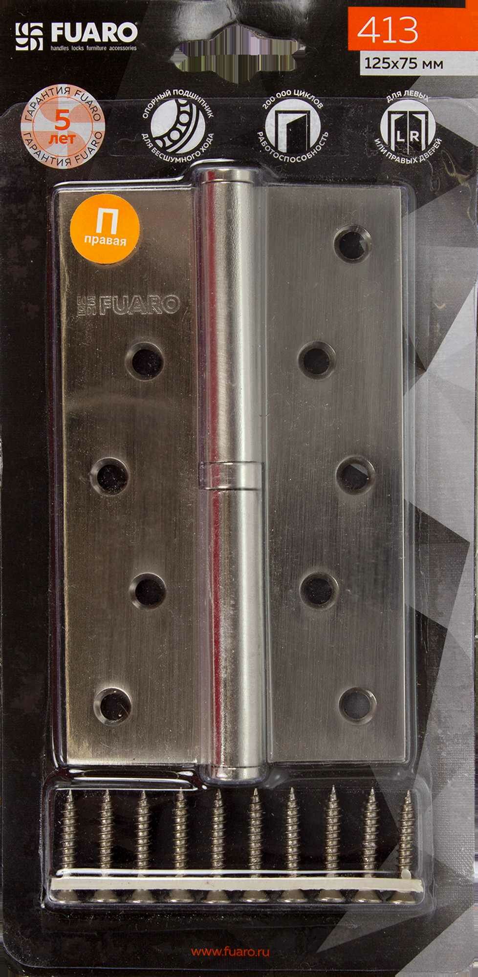 Петля съёмная правая S125413R-SN/BL, 125х75 мм, сталь, цвет перламутровый никель информация:
