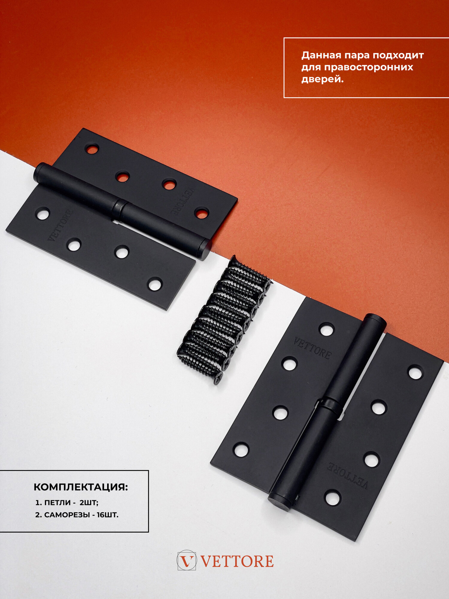 20482 Петли дверные съемные VETTORE 100 75 2.5mm-1BB MBP-R (правая) (Черный матовый), 2 шт информация: