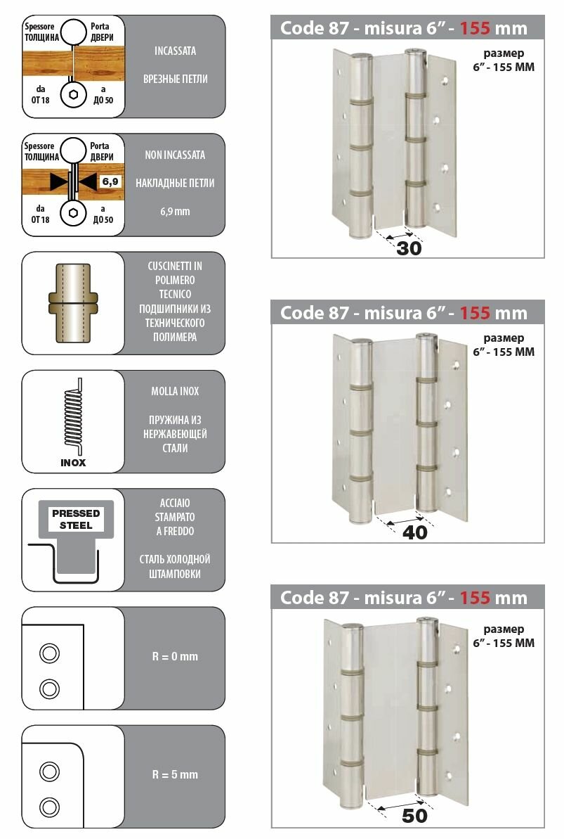 Дверная петля барная пружинная двусторонняя Fratelli Cattini CODE 87 155-50 CS мат хром 4 531 ₽