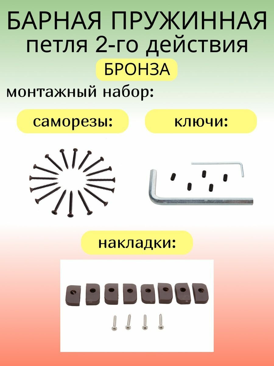 10 цен на Барная пружинная петля двойного действия ALDEGHI LUIGI SpA 155х27х40 мм, бронза, к-т: 2 шт + монтажный набор, 87AB155-40