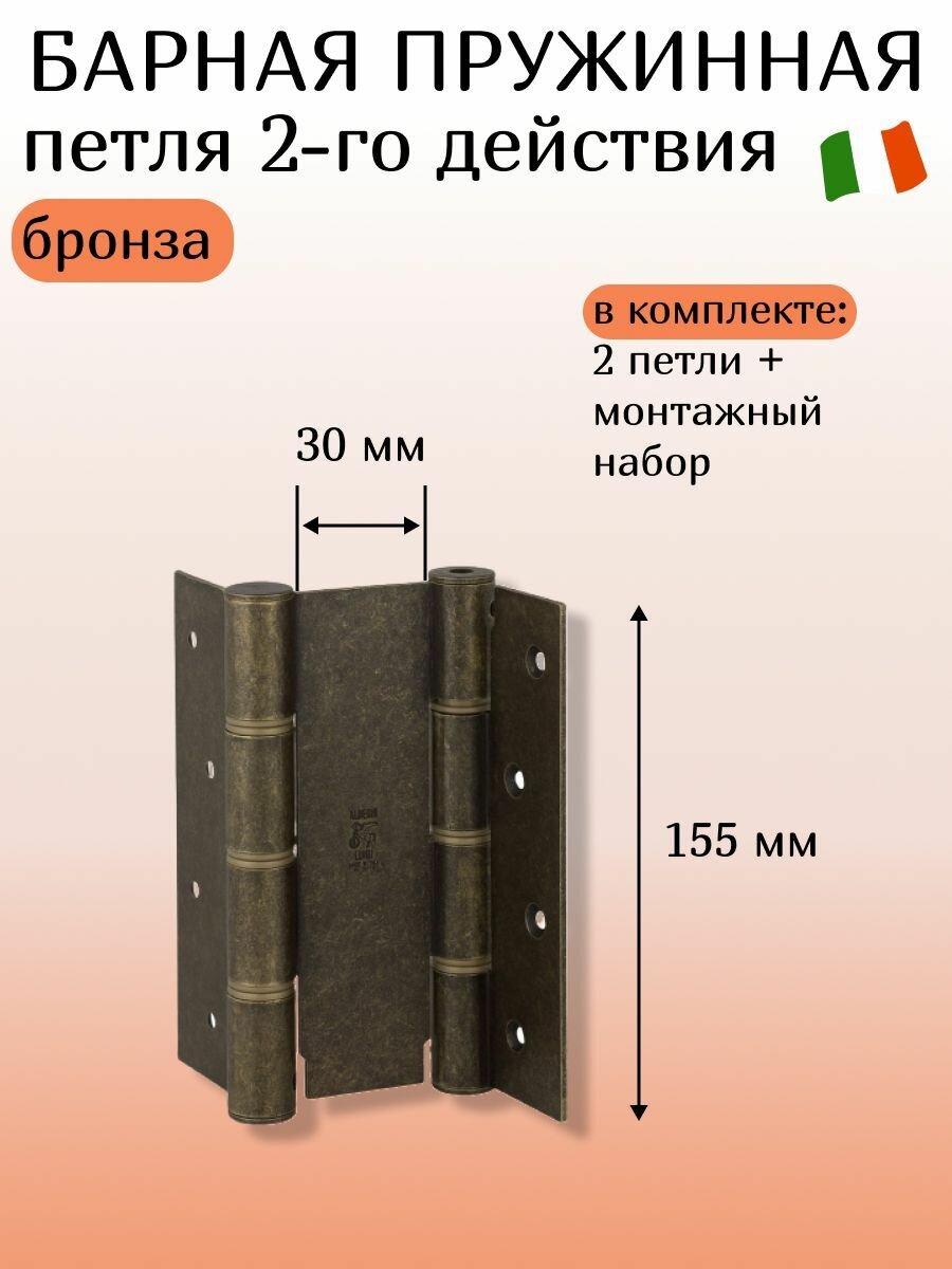 Барная пружинная петля двойного действия ALDEGHI LUIGI SpA 155х27х40 мм, бронза, к-т: 2 шт + монтажный набор, 87AB155-40 5 624 ₽