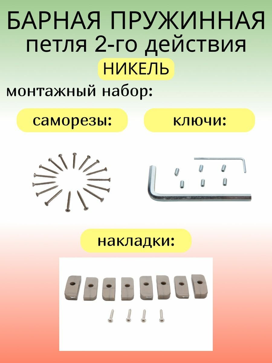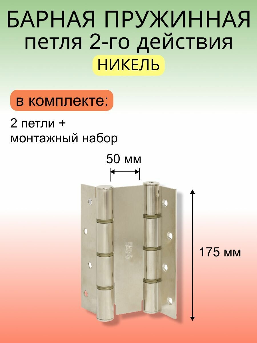 Барная пружинная петля двойного действия 2-го действ.175х37/50 мм, цвет: никель, к-т: 2 шт + монтаж. наб. информация: