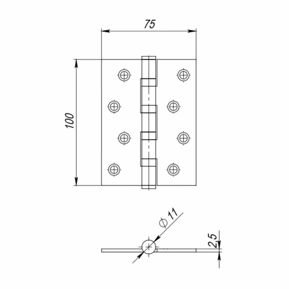 Петля универсальная без врезки Vantage 2BB BL 100*75*2,5 черный (2шт в комплекте)