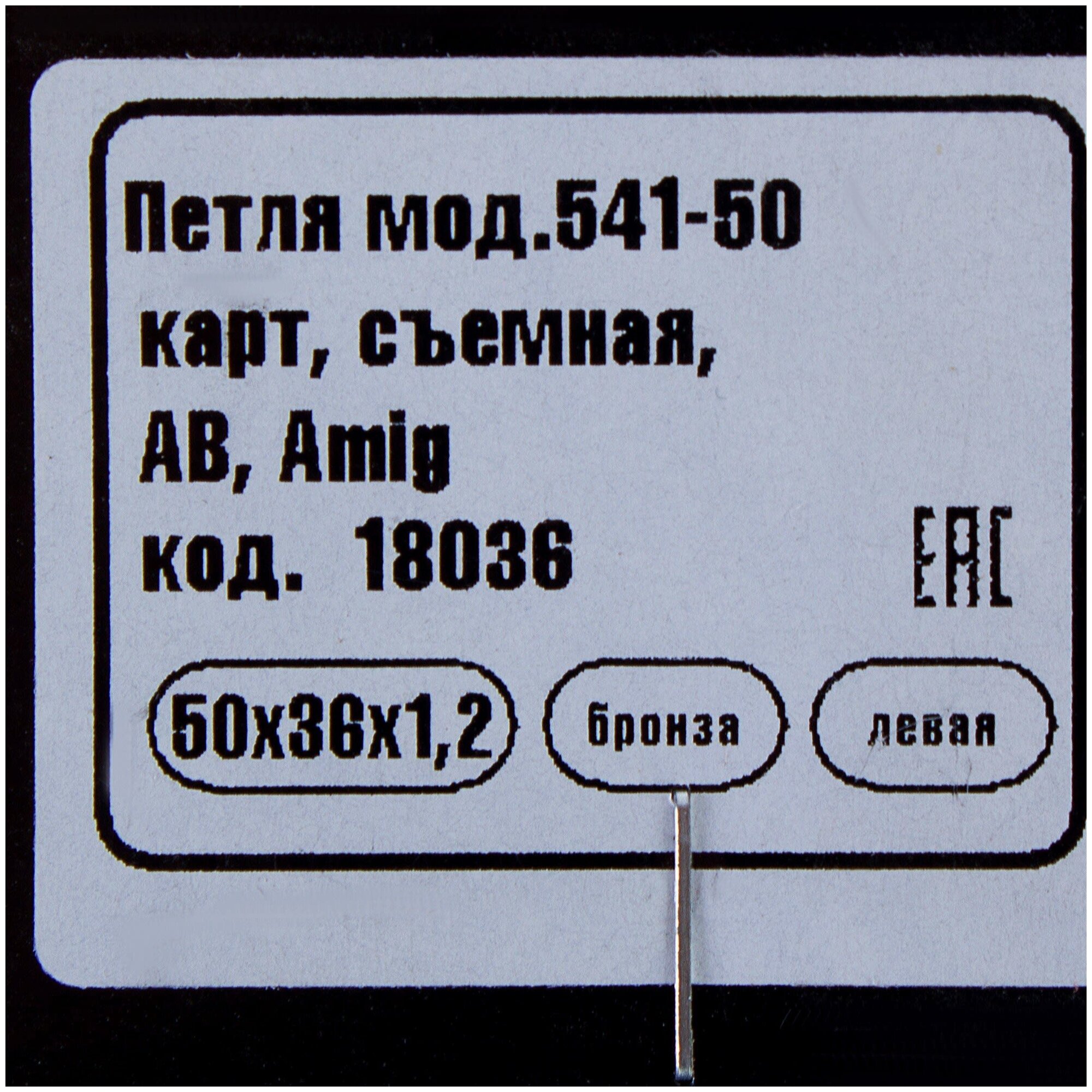 Отзывы на Петля мебельная карточная съёмная левая Amig 541 50х35 мм сталь цвет бронза