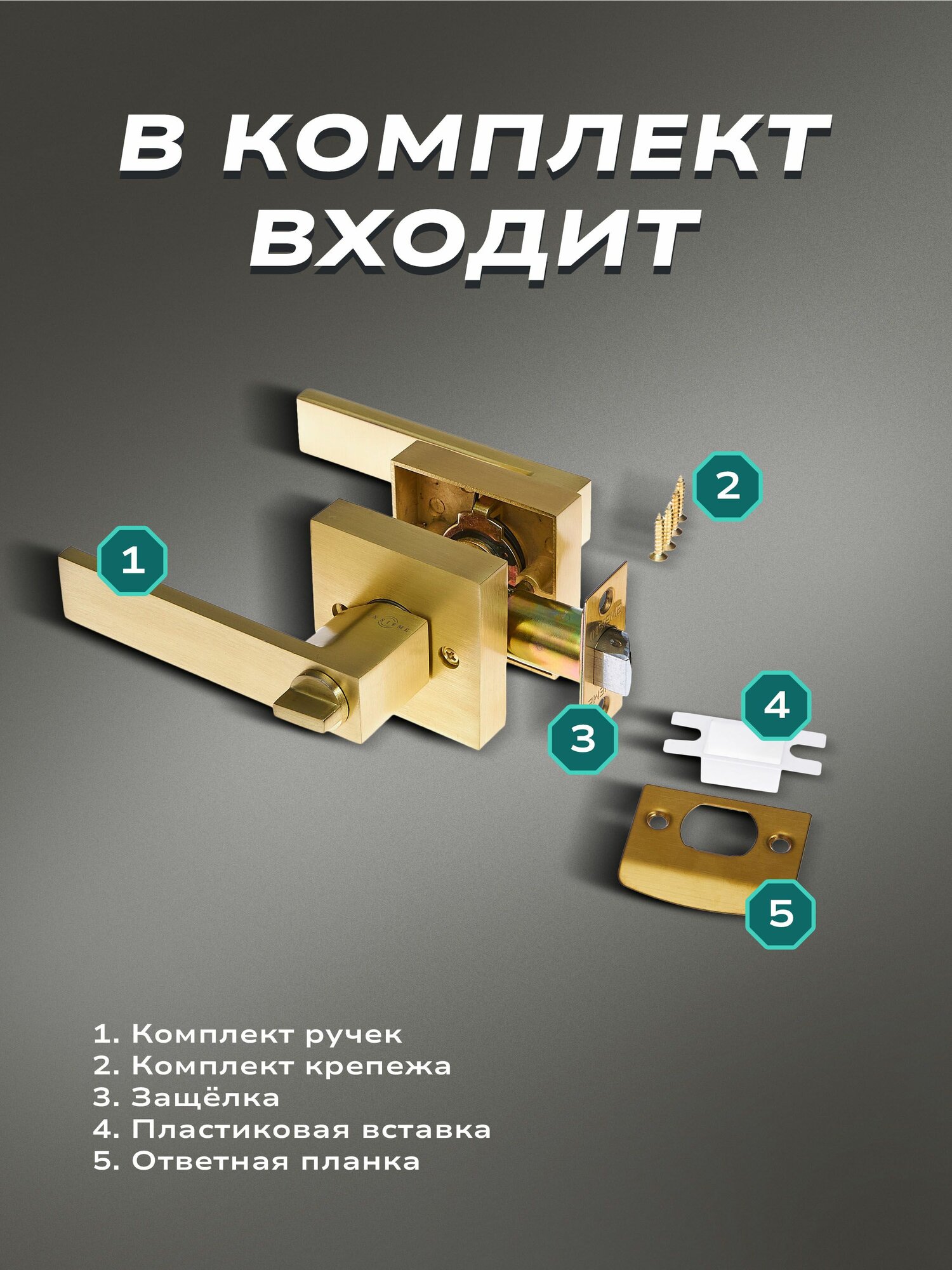 10 цен на Ручка дверная с защелкой межкомнатная Premium 111-03 BK PB фиксатор, поворотная. Матовое золото