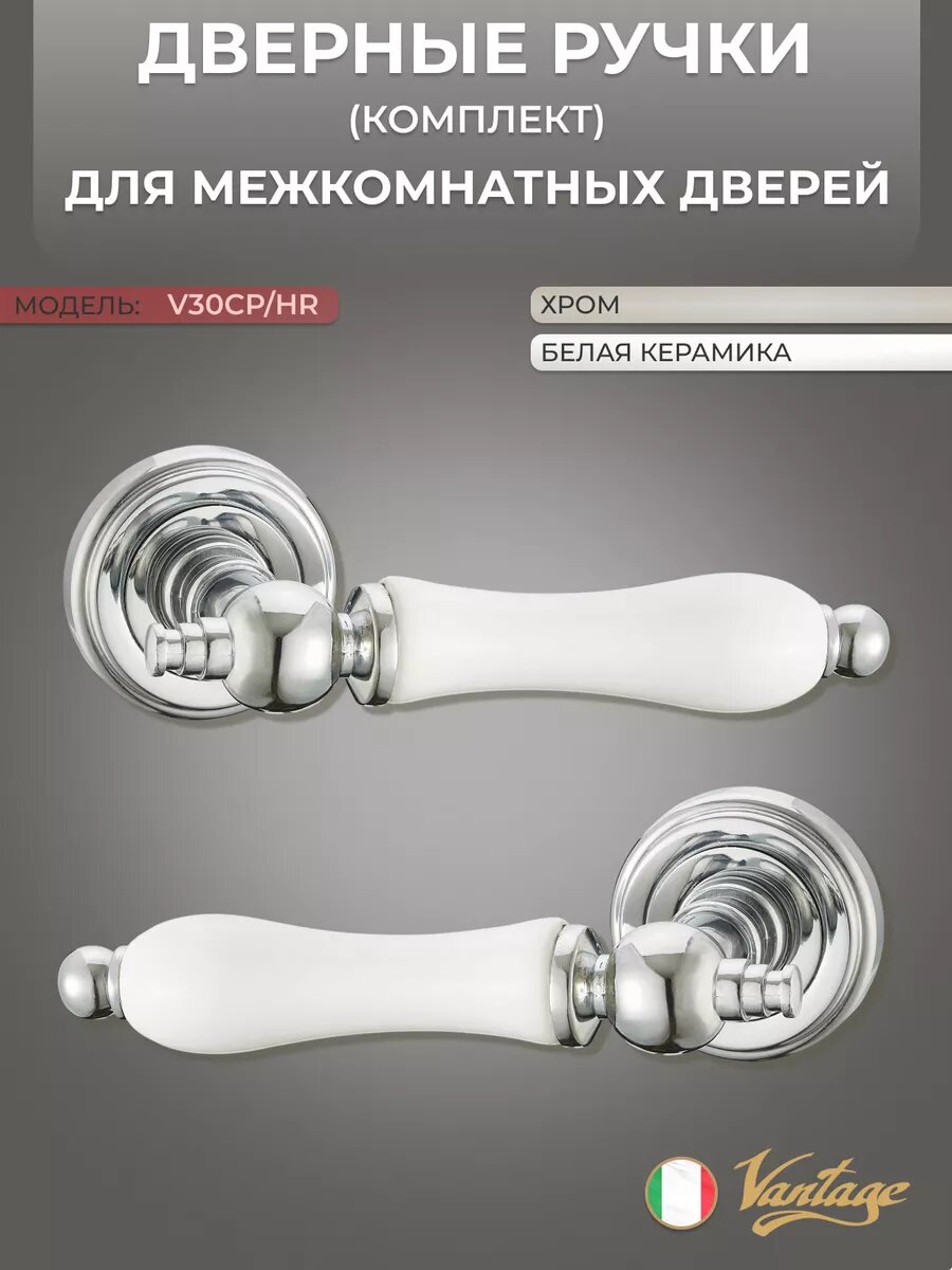 Ручка дверная V30CP/HR хром с белой керамикой информация: