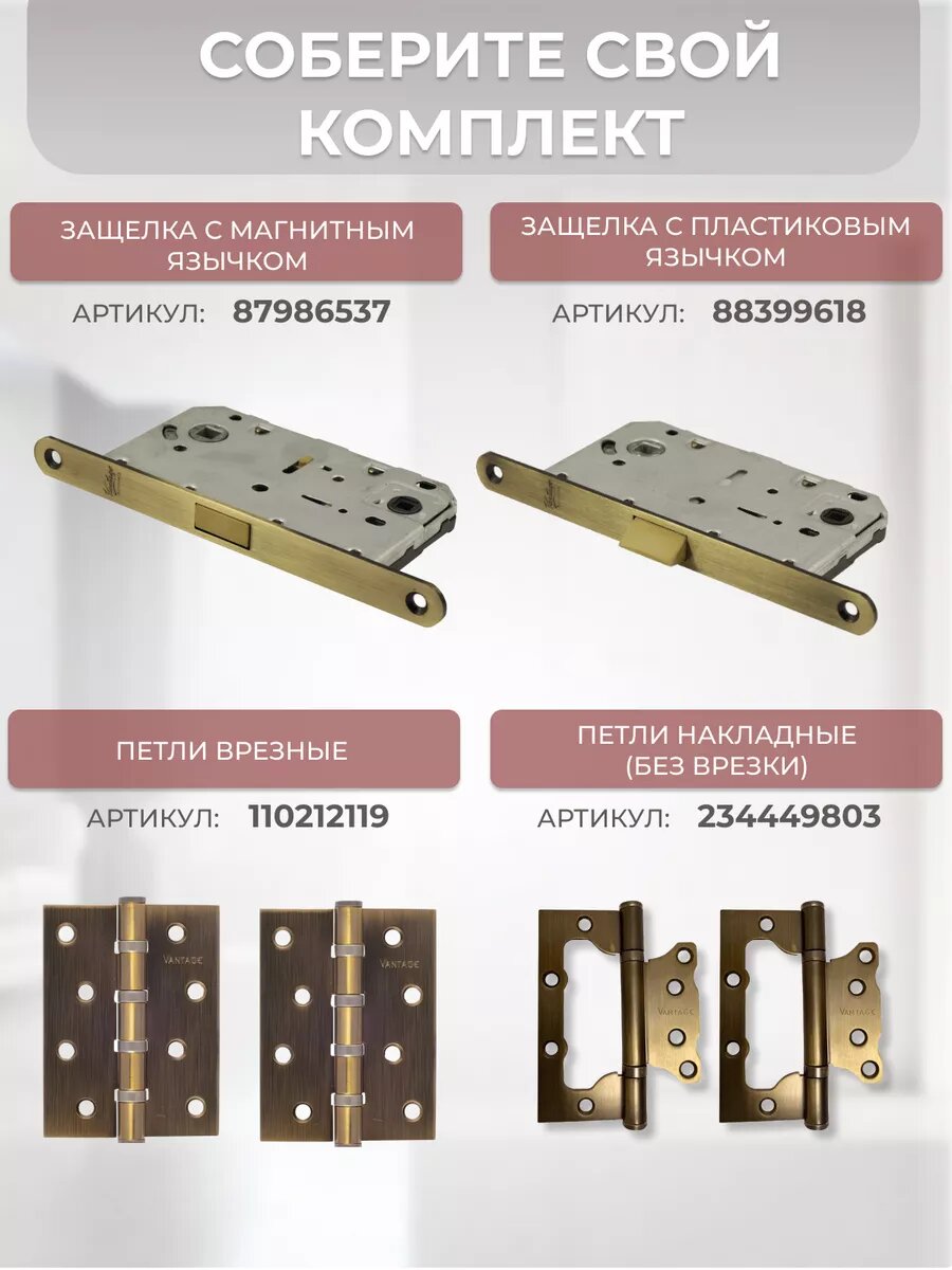 Ручка дверная Rucetti (Ручетти) RAP 9 AB + Защелка RP1895 AB + Дверные петли бабочки RFH-100*75*2,5 AB- 2 шт.