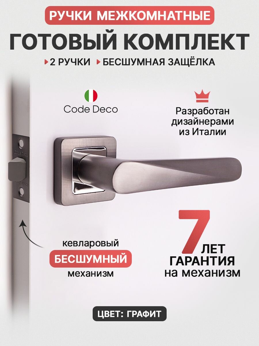 Готовый комплект 2в1 ручка дверная межкомнатная CODE DECO 22114 Графит + защелка без фиксации информация: