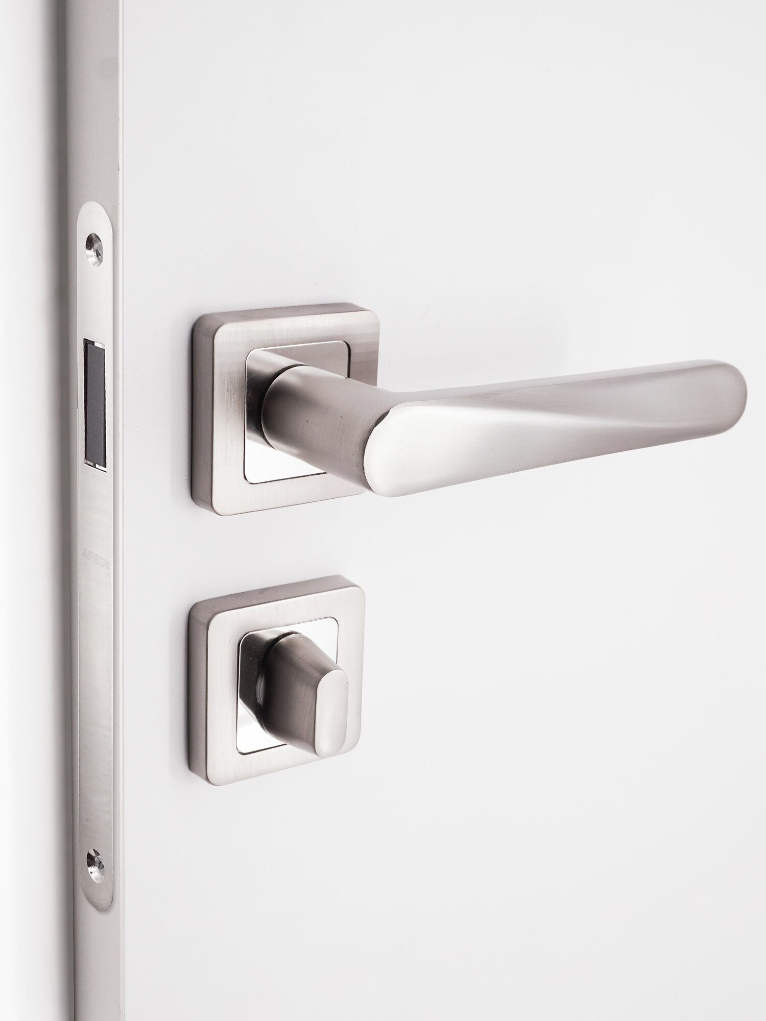Готовый комплект 3в1 ручка дверная межкомнатная CODE DECO 22114 Никель матовый + защелка с фиксацией + WC-фиксатор 2 406 ₽