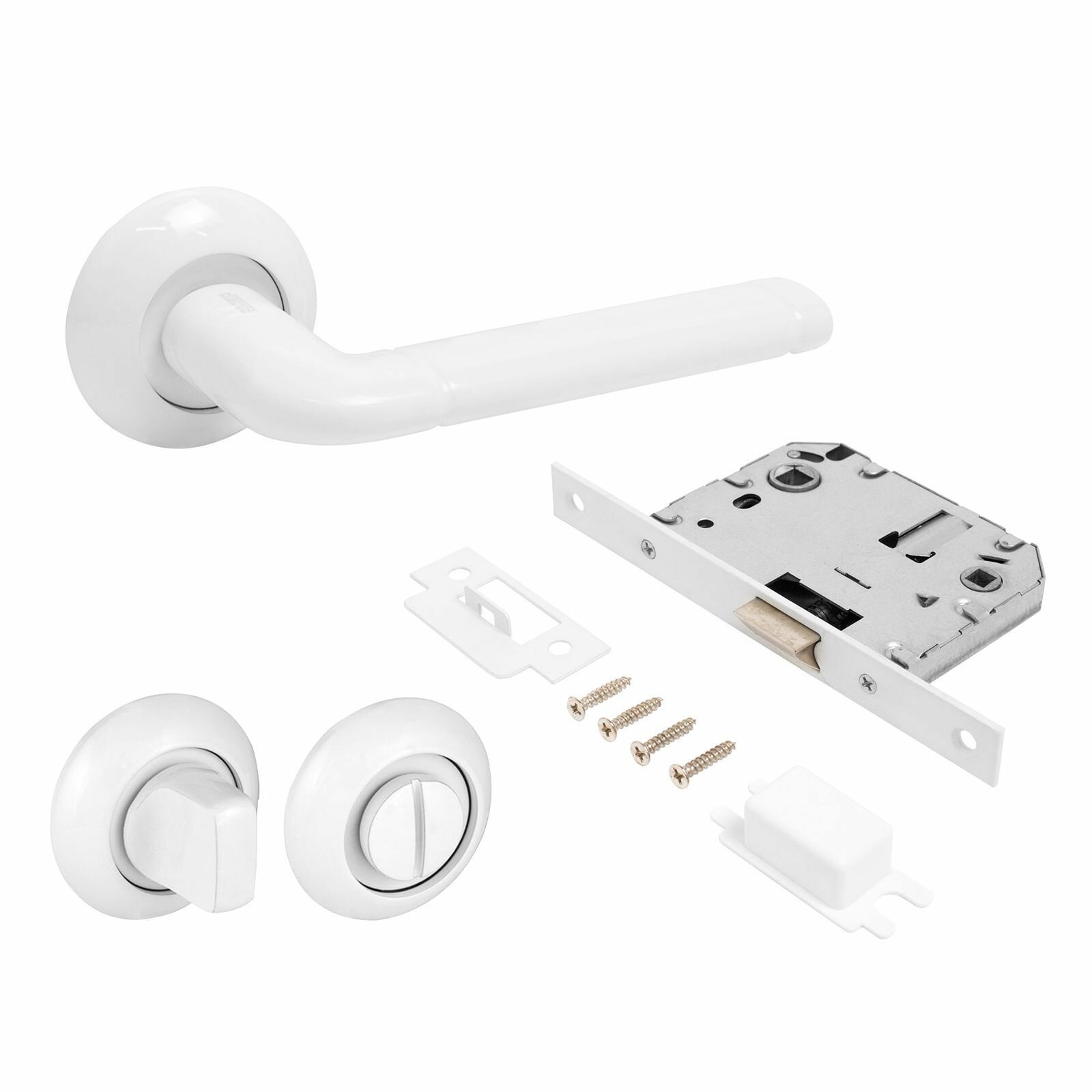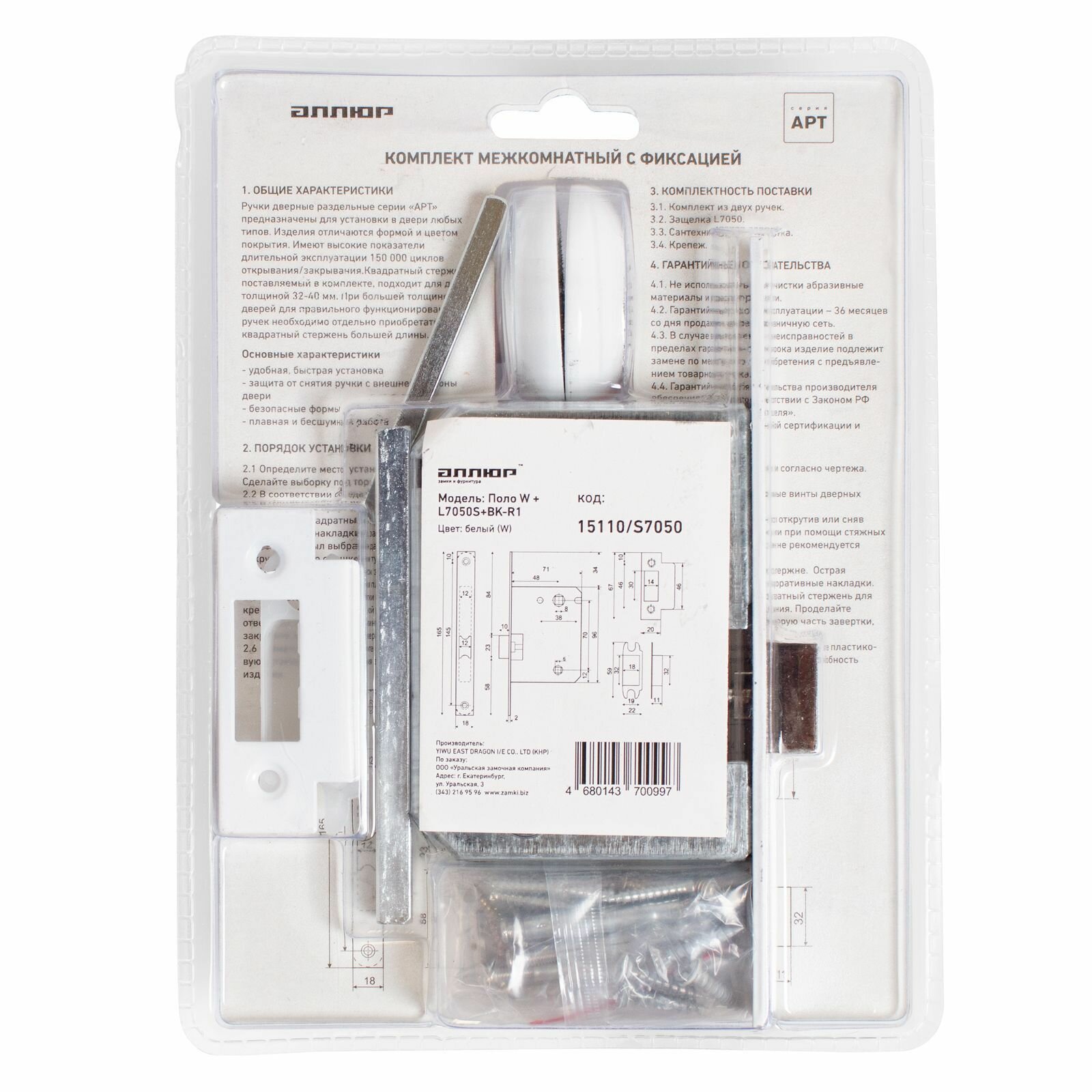 10 цен на Комплект ручка дверная, защелка, поворотник аллюр АРТ "поло" W+L7050S W+BK-R1 W(15110/S7050), матовый белый