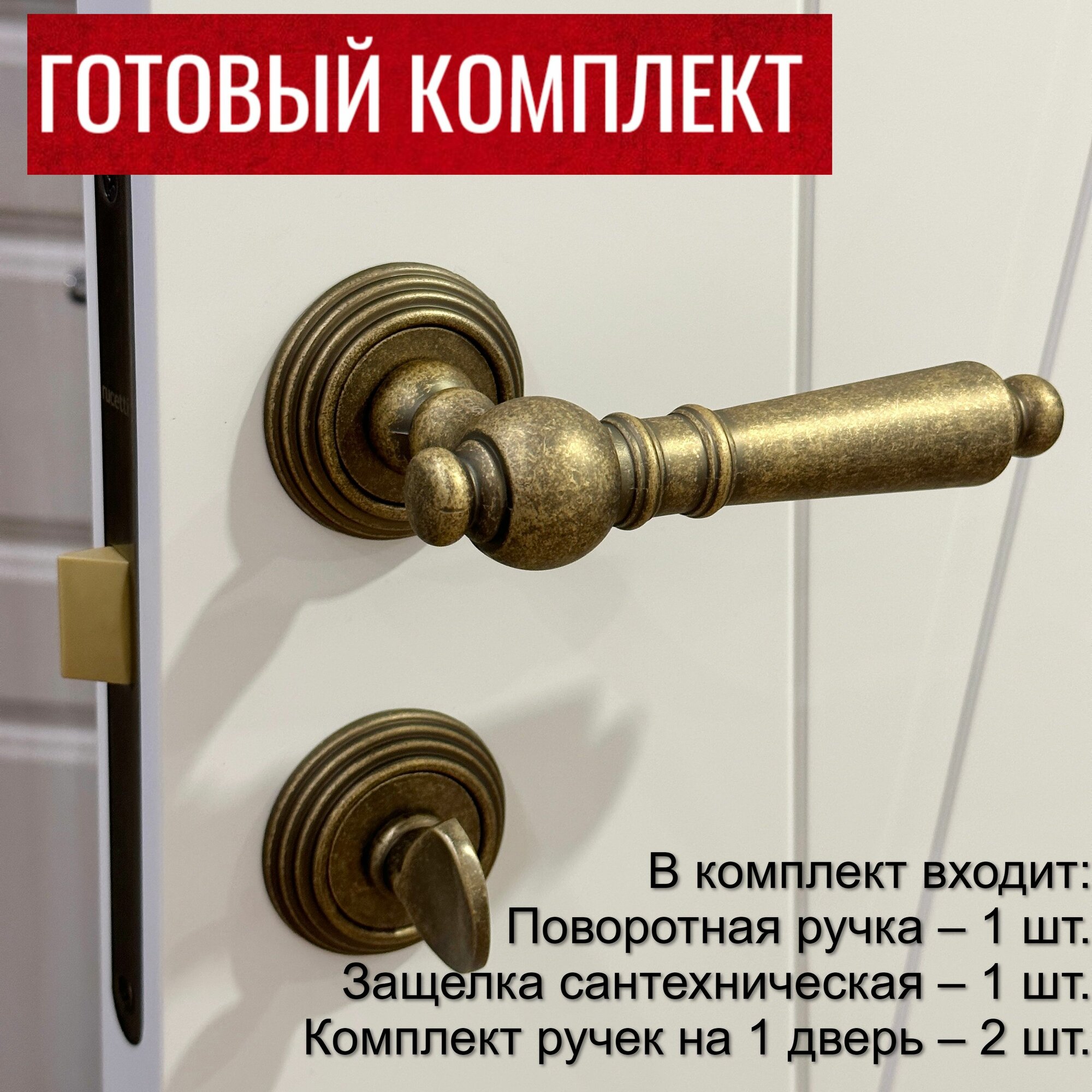 10 цен на Дверные ручки Rucetti (Ручетти) RAP-CLASSIC-L 8 OMB + Межкомнатный замок RP1895 AB + Завертка сантехническая RAP-CLASSIC-L WC OMB / Межкомнатные дверные ручки с замком и фиксатором
