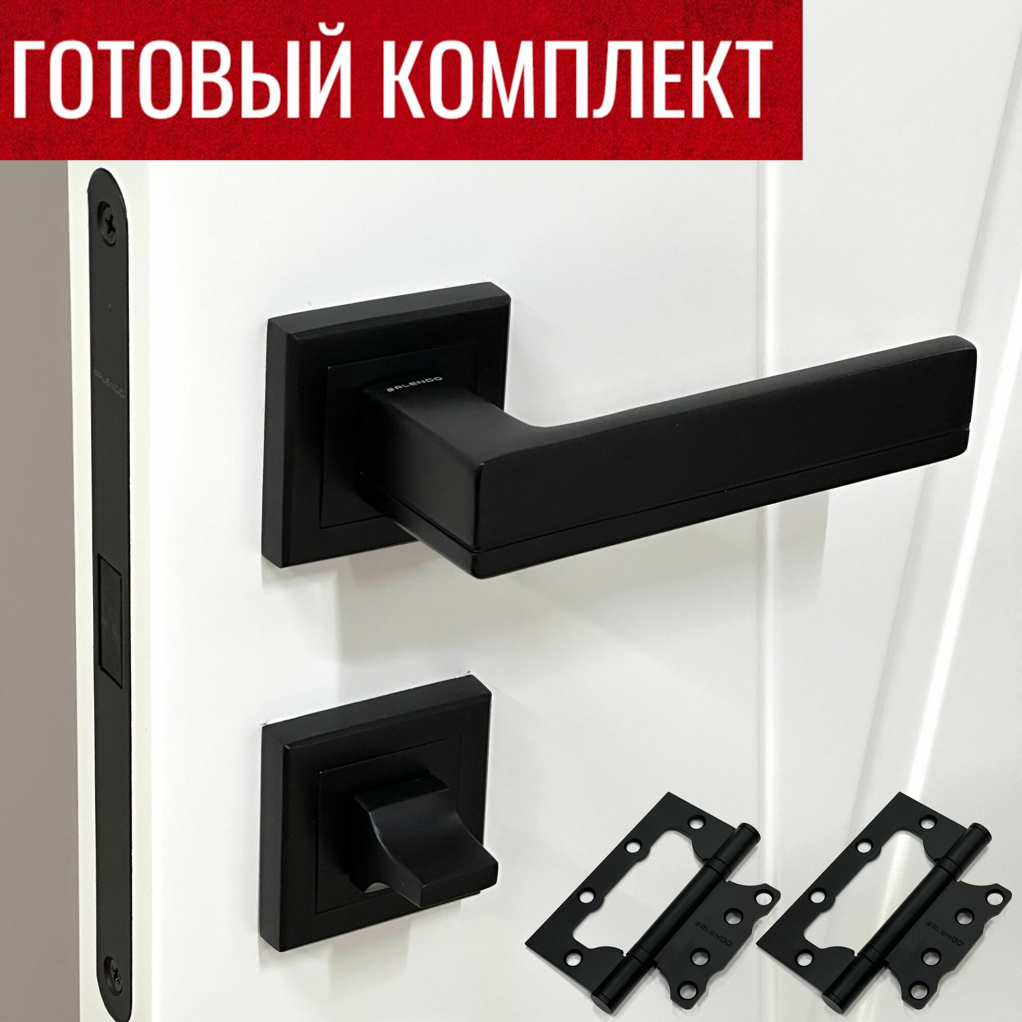 Межкомнатная дверная ручка Salendo SL-05-S BL + Магнитный замок M1885-ET BL + Накладки на личинку замка SL-ET-S BL + Личинка для замка ключ/ключ 60K/K-BL + Дверные петли SL 100X70X2,5-4BB BL _ 2 шт. 3 600 ₽