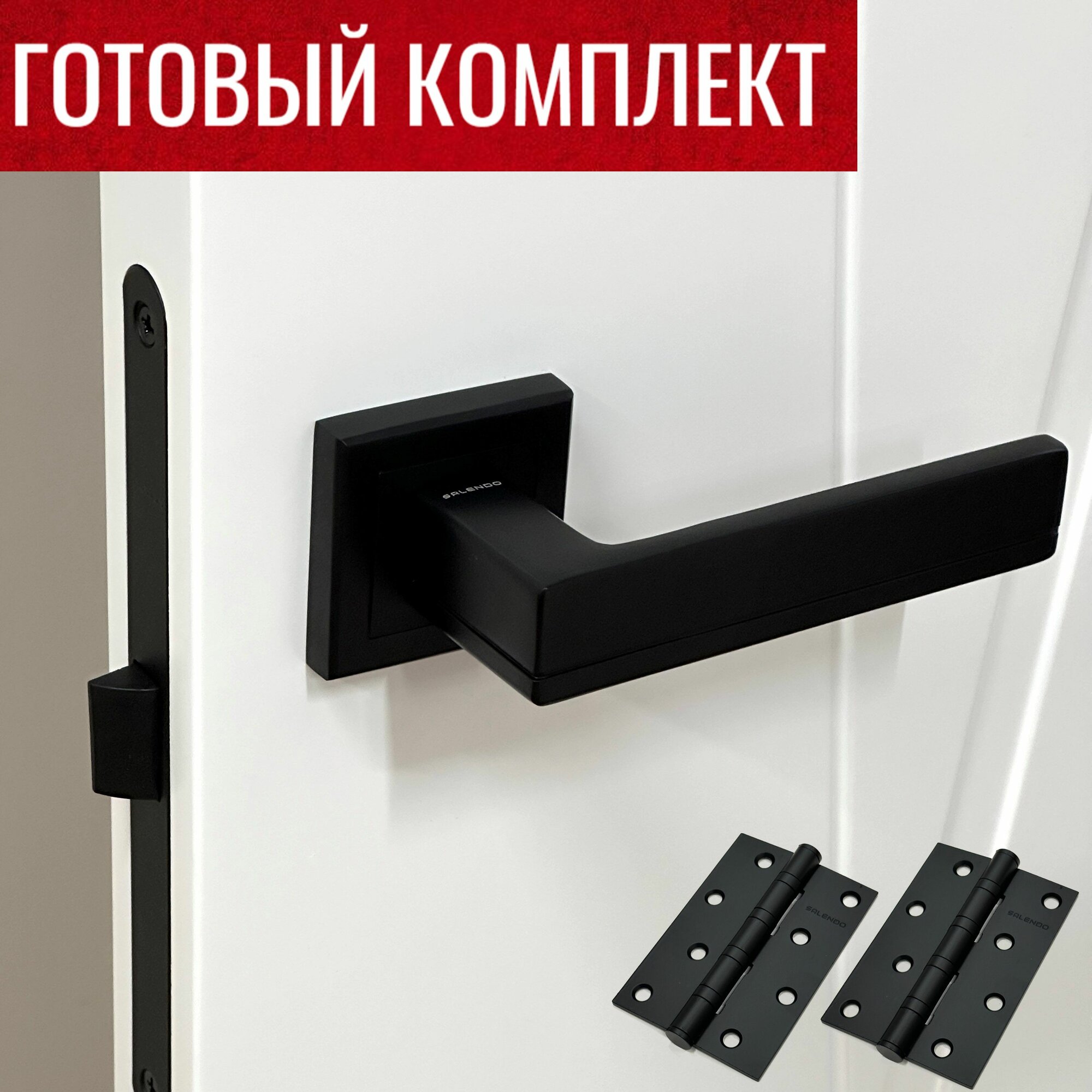 Отзывы на Ручка дверная межкомнатная черная SL-05-S BL + Защелка P1896-WC BL + Универсальные дверные петли SL 100X70X2,5-4BB BL - 2 шт.