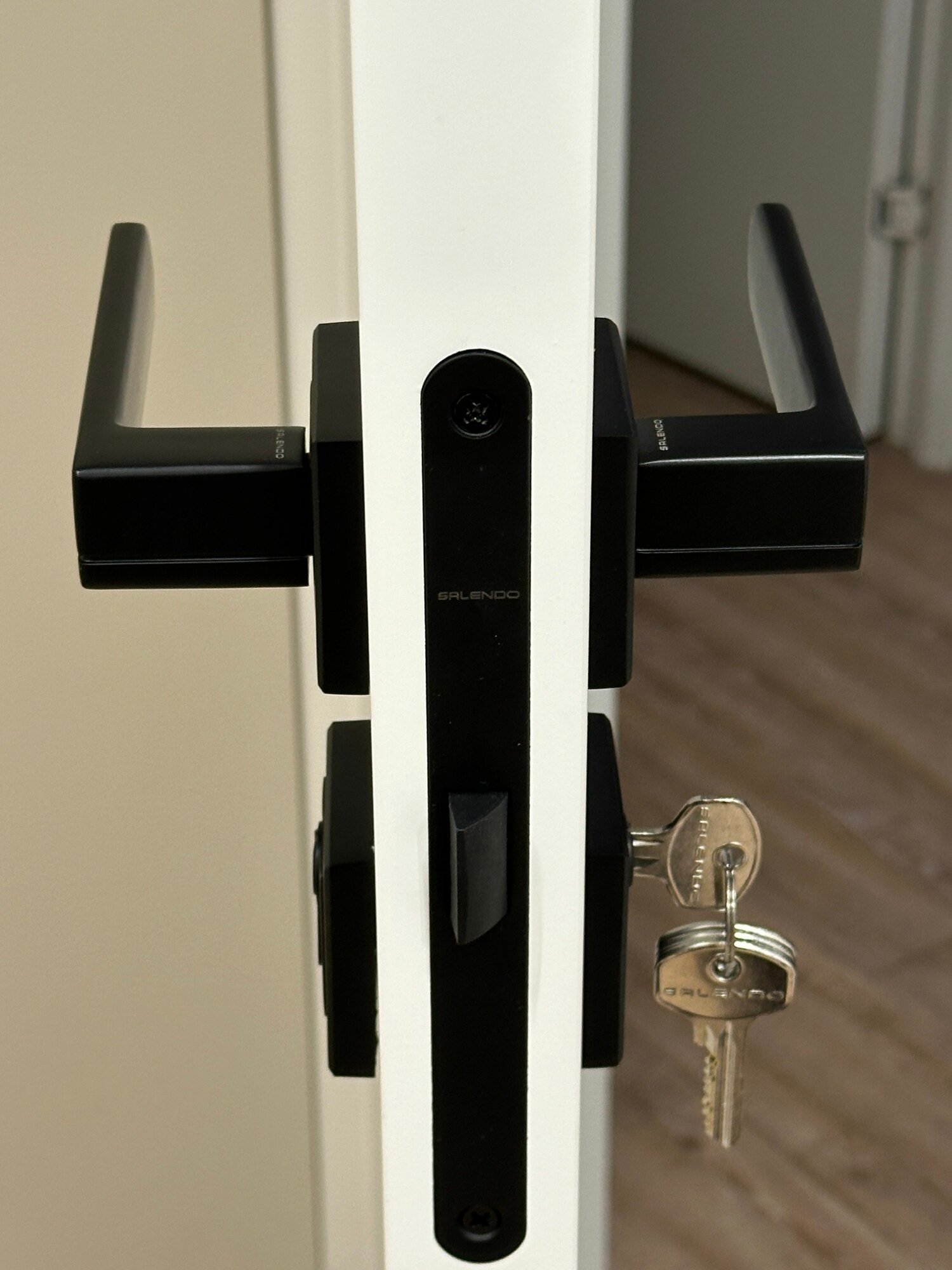 Отзывы на Межкомнатные дверные ручки Salendo SL-05-S BL + Замок P1885-ET BL + Накладки на личинку замка SL-ET-S BL + Личинка для замка ключ/ключ 60K/K-BL + Дверные петли SL 100X70X2,5-4BB BL _ 2 шт.