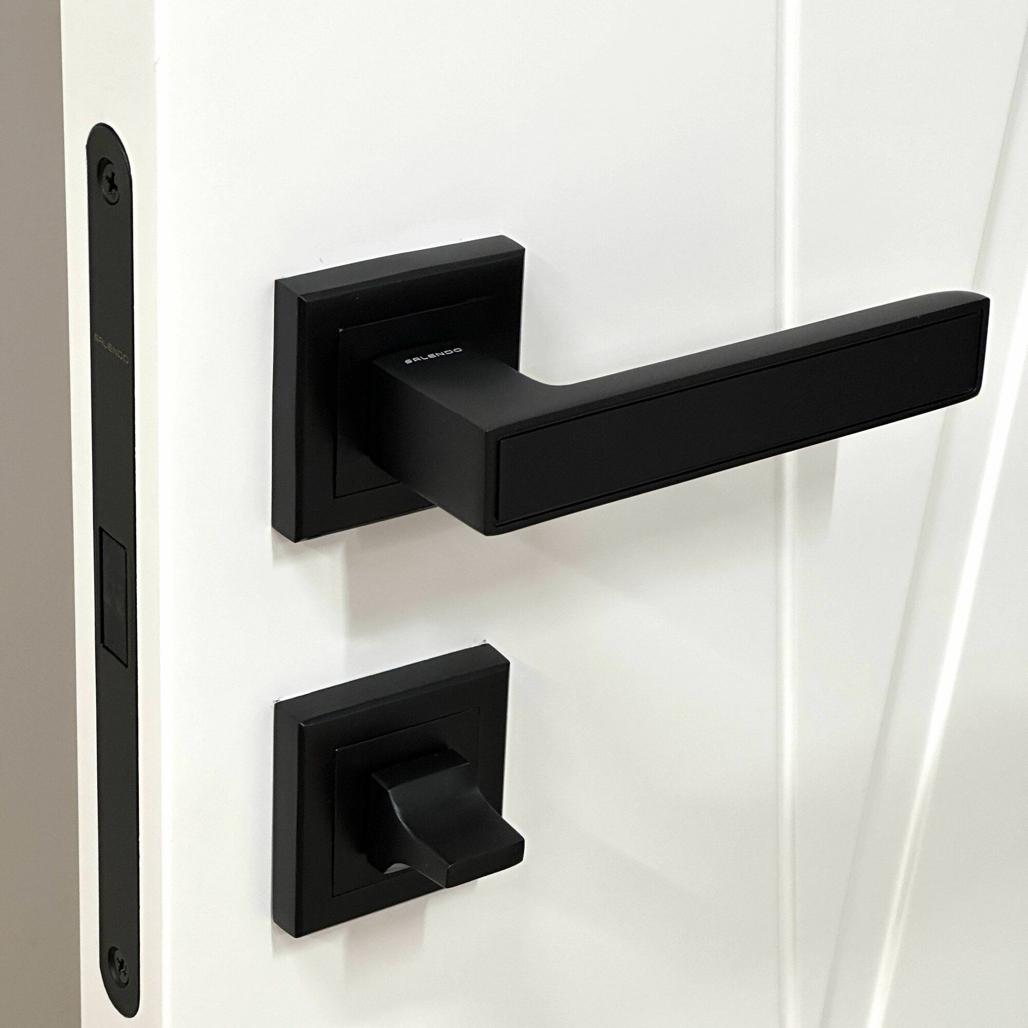 10 цен на Ручка дверная межкомнатная черная SL-04-S BL + Магнитный замок M1896-WC BL + Сантехническая завертка SL-WC-S BL