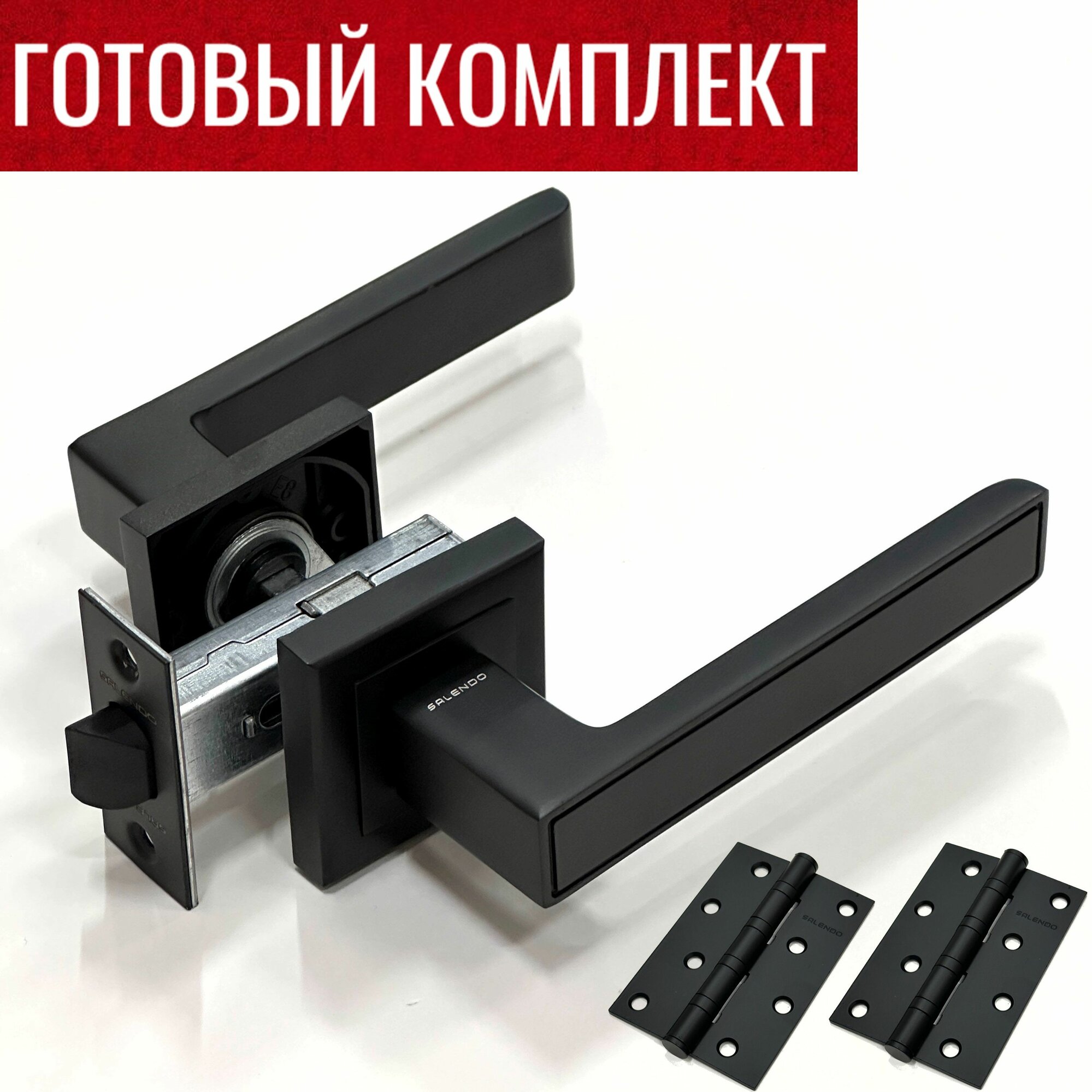 Дверные ручки Salendo SL-04-S BL + Защелка P1896-WC BL + Сантехническая завертка SL-WC-S BL + Дверные петли SL 100X75X2,5-2BB BL - 2 шт. 2 870 ₽