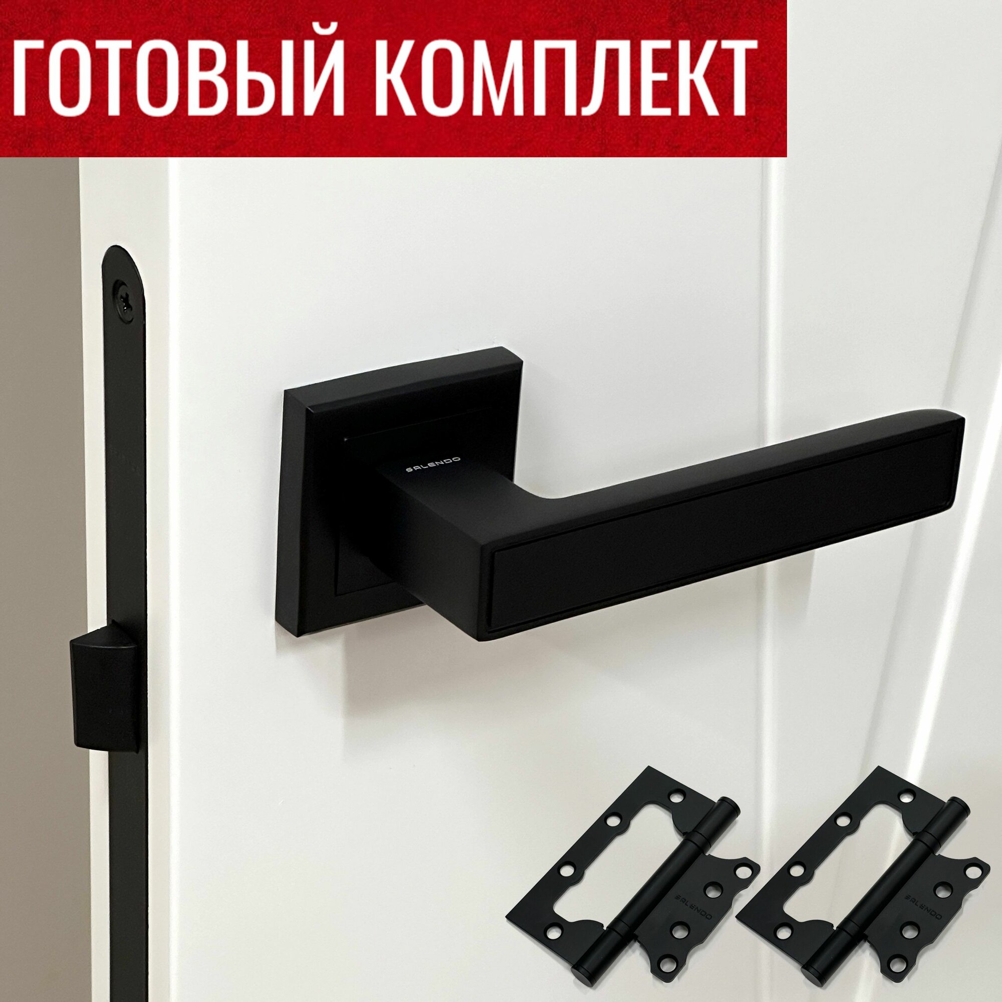 Межкомнатная дверная ручка Salendo SL-04-S BL + Магнитный замок M1885-ET BL + Накладки на личинку замка SL-ET-S BL + Личинка для замка ключ/ключ 60K/K-BL + Дверные петли SL 100X70X2,5-4BB BL _ 2 шт. 3 600 ₽