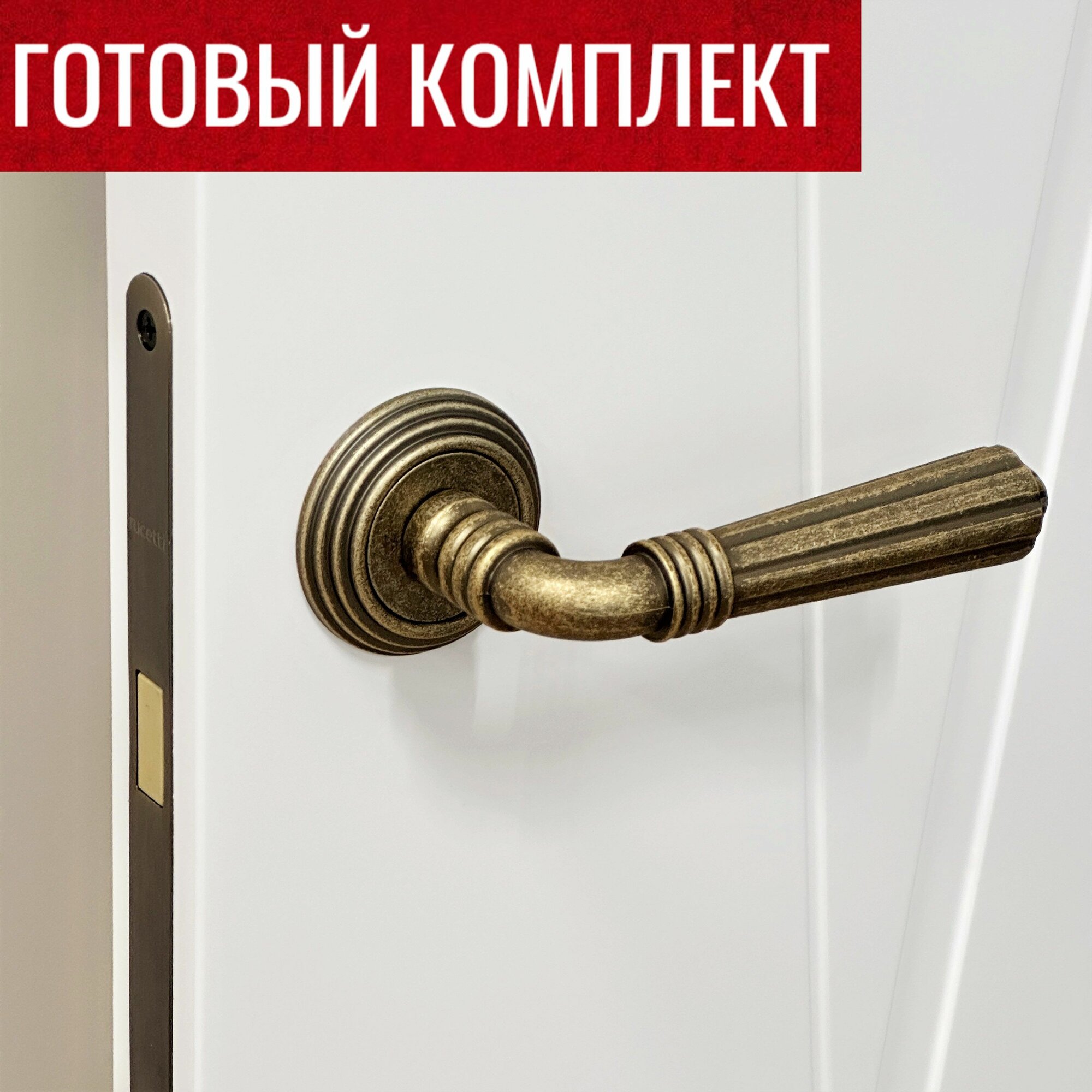 Дверные ручки Rucetti (Ручетти) RAP-CLASSIC-L 5 OMB + Магнитный замок RM1895 AB + Сантехническая завертка RAP-CLASSIC-L WC OMB / Комплект ручек, Магнитная защелка, Фиксатор двери, 2 690 ₽