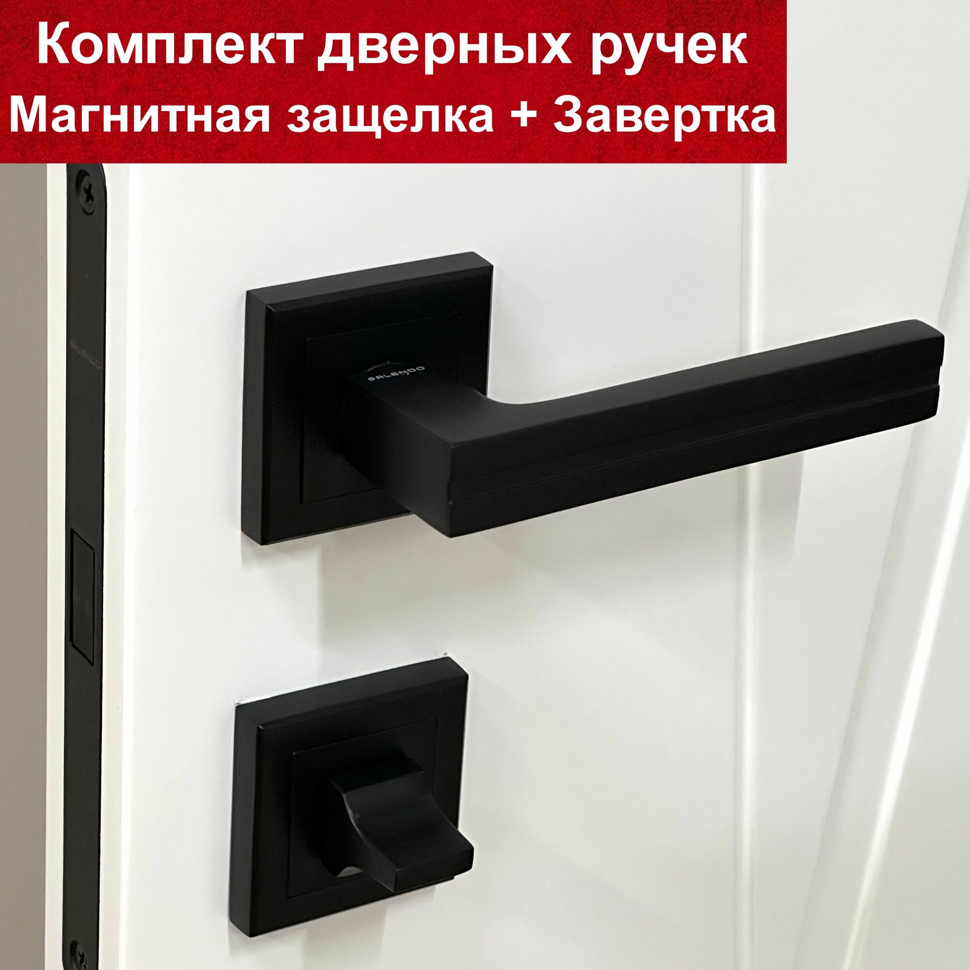 10 цен на Ручка дверная межкомнатная черная SL-06-S BL + Магнитный замок M1896-WC BL + Сантехническая завертка SL-WC-S BL