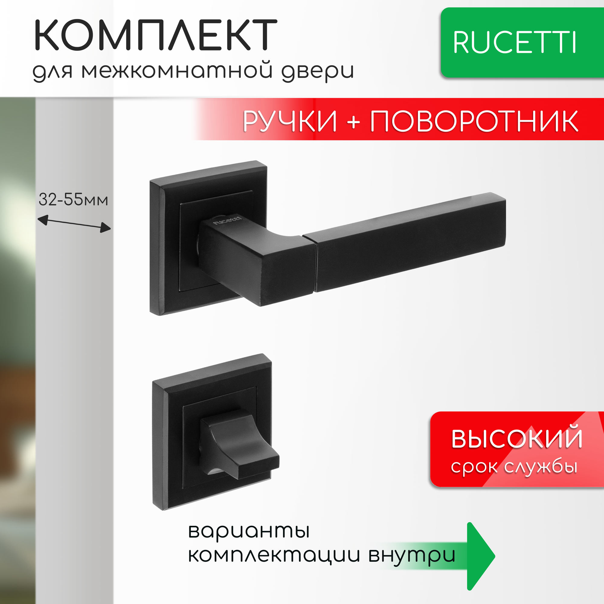 Комплект для межкомнатной двери Rucetti ручки RAP 16 S BL + фиксатор / черный матовый информация: