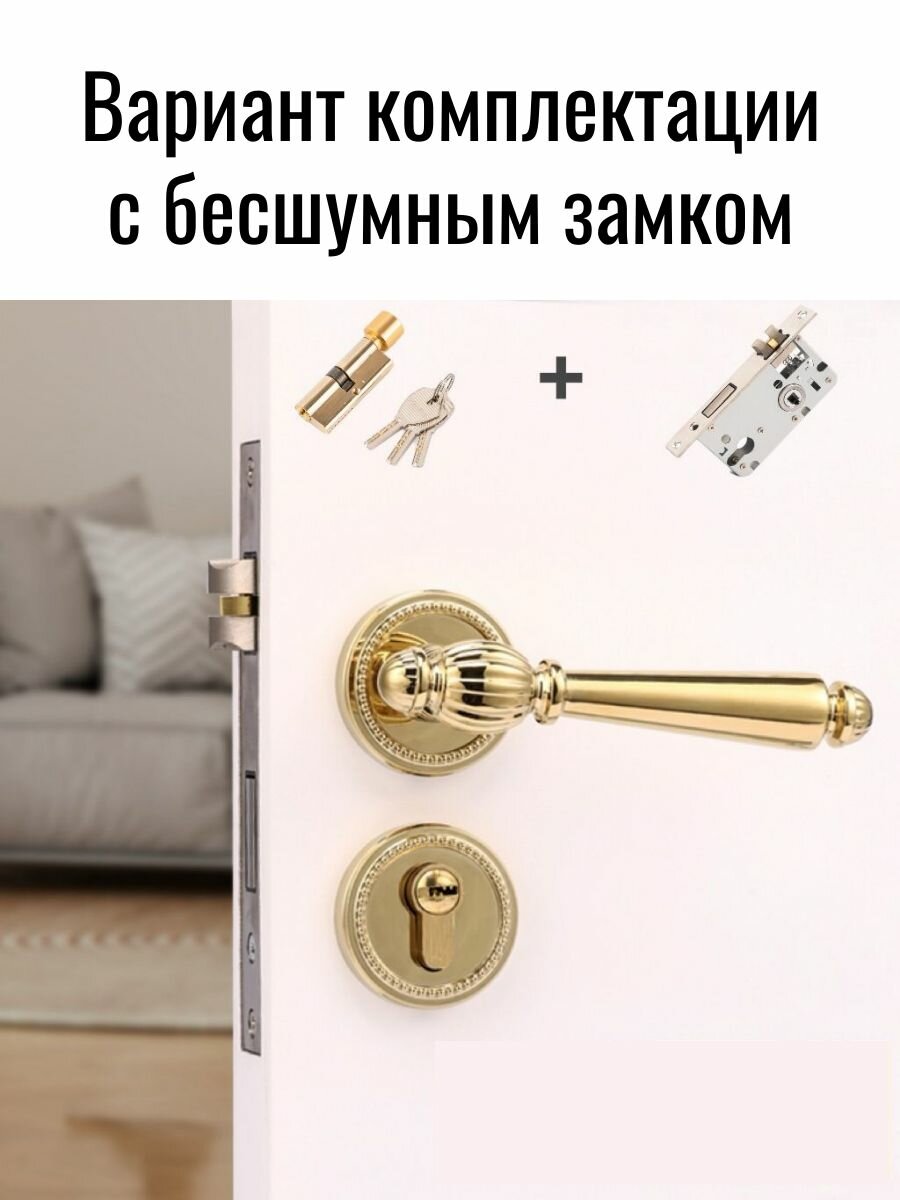 10 цен на Ручка дверная, с бесшумным замком pvd-99967, ЦАМ, золотистая, круглая, 1 шт