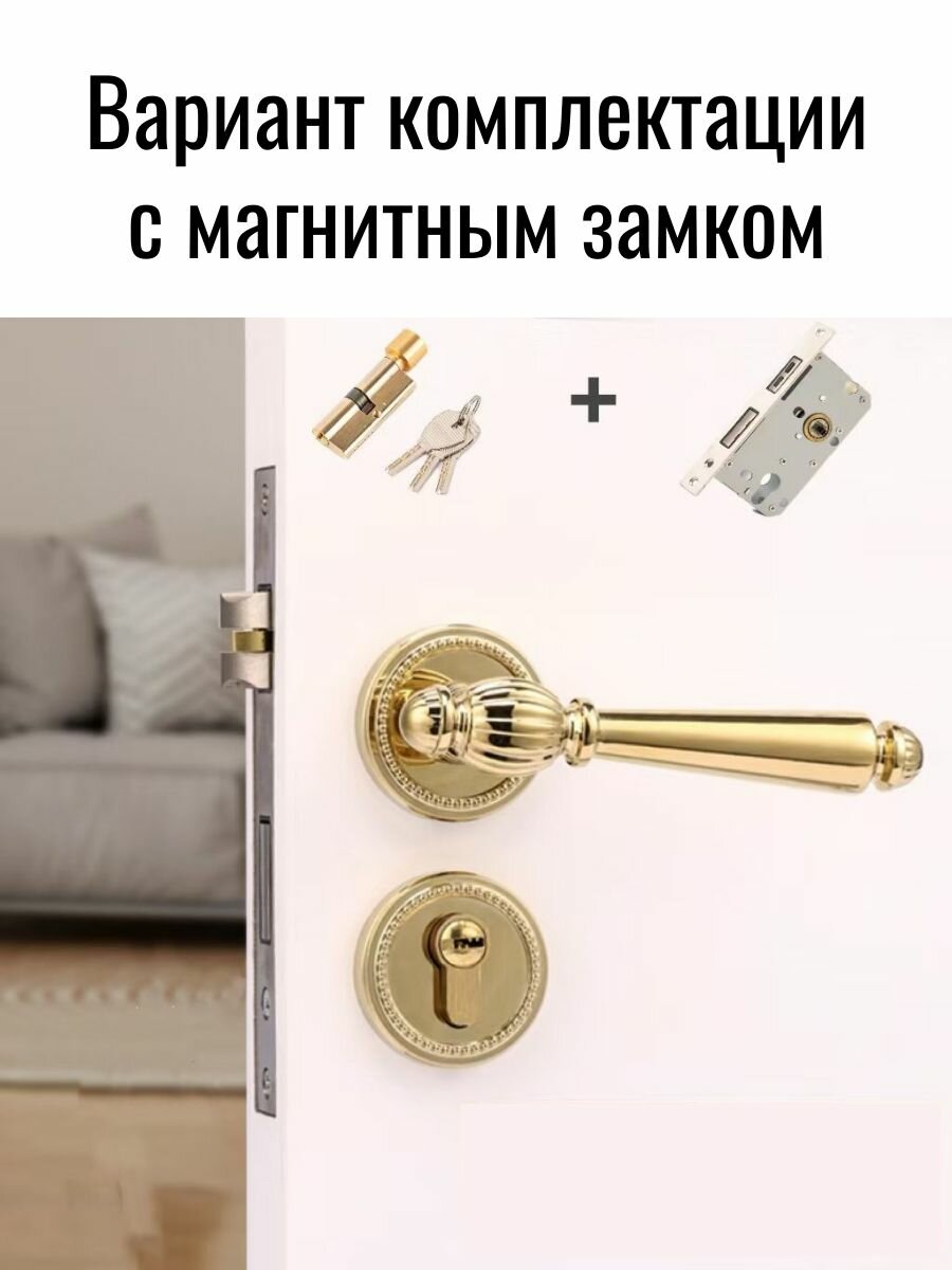 Ручка дверная, с бесшумным замком pvd-99967, ЦАМ, золотистая, круглая, 1 шт 5 500 ₽