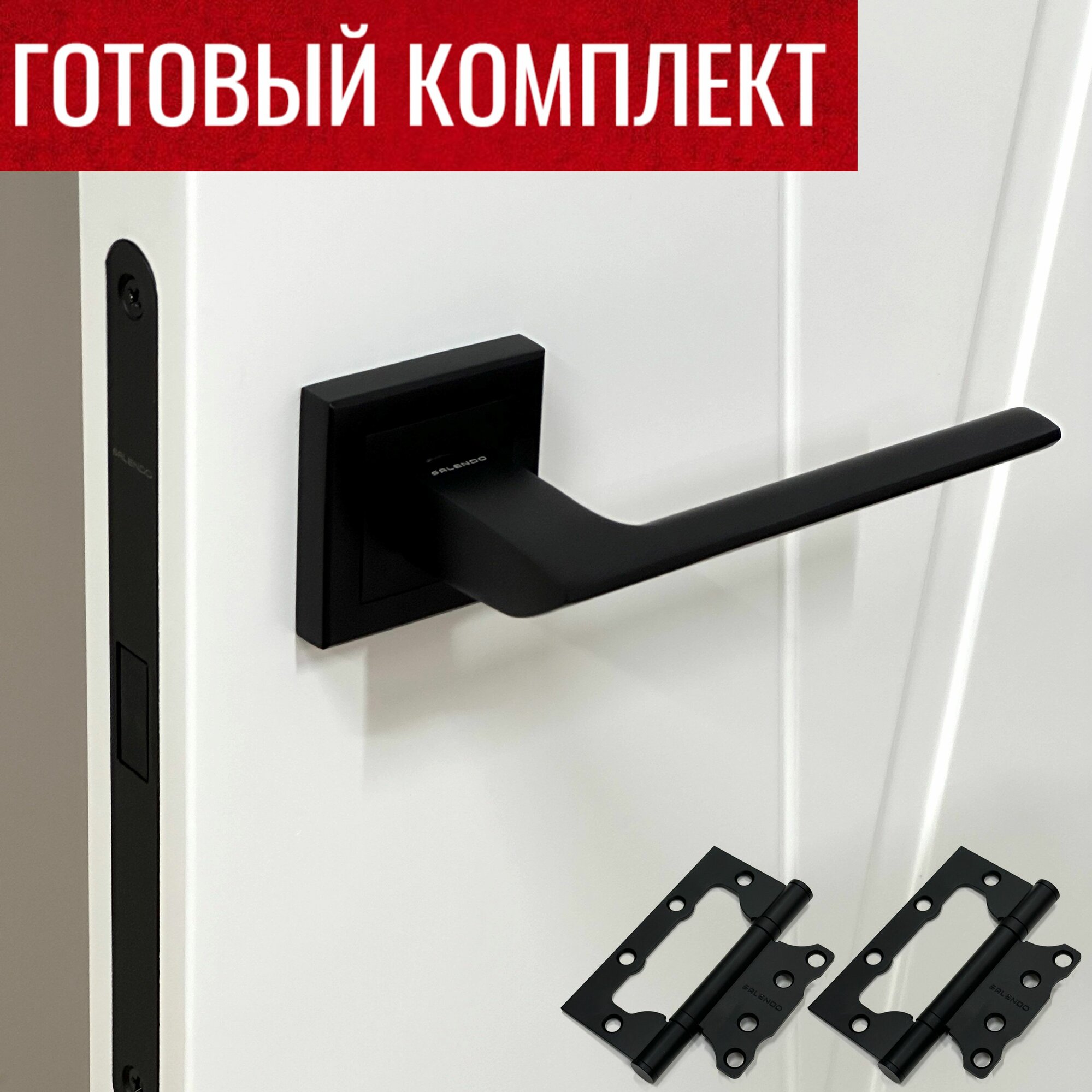 Межкомнатная дверная ручка Salendo SL-03-S BL + Магнитный замок M1885-ET BL + Накладки на личинку замка SL-ET-S BL + Личинка для замка ключ/ключ 60K/K-BL + Дверные петли SL 100X70X2,5-4BB BL _ 2 шт. 3 600 ₽